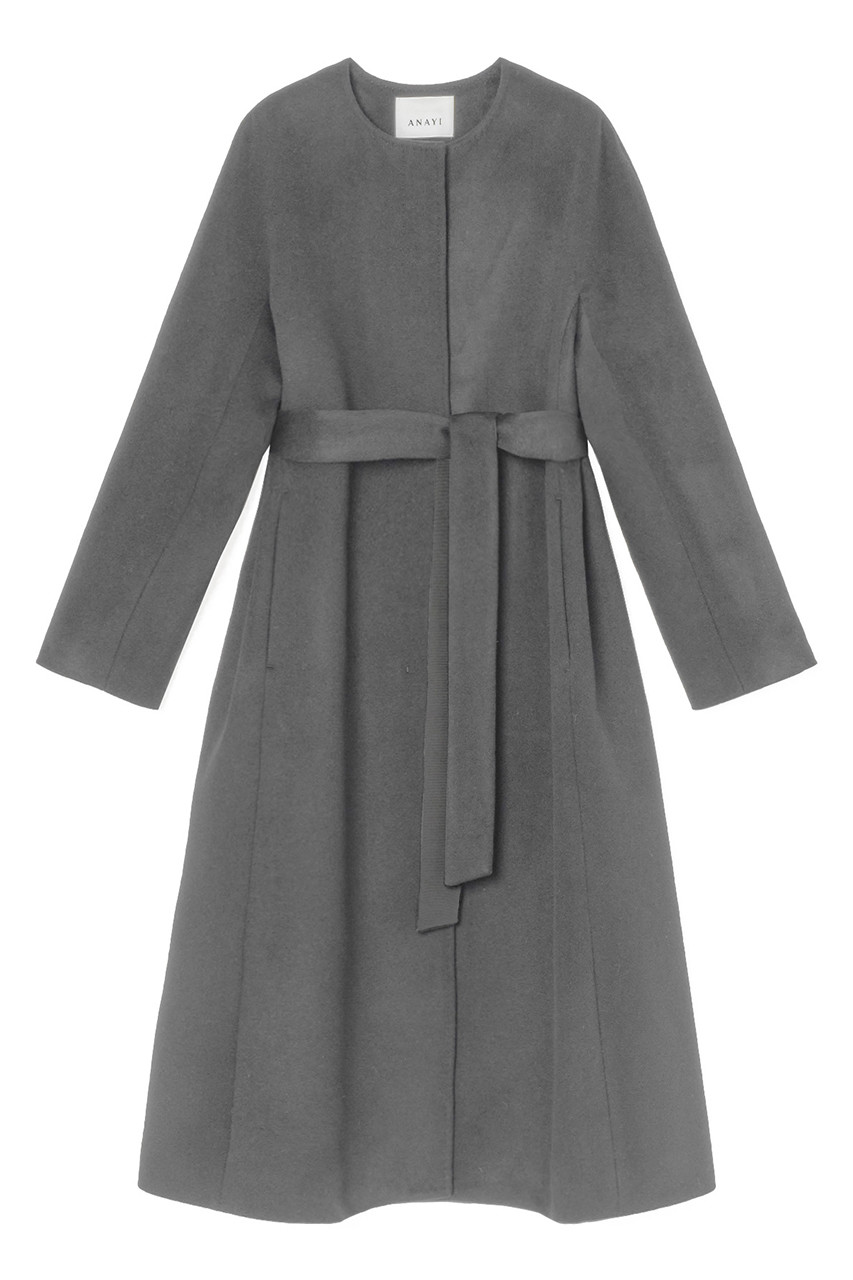 ANAYI カシミヤノーカラーベルトコート (チャコールグレー, 38) アナイ ELLE SHOP