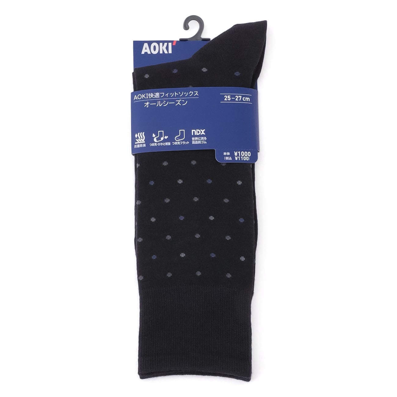 AOKI快適フィットソックス・抗菌防臭加工付きカジュアルテイストの柄をビジネス仕様にデザインしたオールシーズン着用できるフィットソックスです。--------------------抗菌防臭臭いを抑える抗菌防臭加工つま先・かかと補強つま先・かかと部分を補強仕様つま先フラットつま先内側の縫い目がフラットでゴロつきを感じにくい仕様フィットゴムゴム糸にフィット感に優れた「NDX」ゴムを使用<NDXの特徴>ナイガイの高品質なゴムです。・ソフトに伸び、速やかに縮みます。締め付けが強くないのに、ズレ落ちにくい快適な着用感・着用と洗濯を繰り返しても、他のゴム糸より長く張力を保持。履き口部分は、他のゴムより1.5倍長く使えます(メーカー測定結果より)--------------------【お取り扱い上のお願い】〇濃色は淡色と分けてお洗い下さいませ。〇商品は裏返してお洗い下さいませ。〇塩素系漂白剤は使用しないで下さいませ。〇すすぎは十分に行って下さいませ。〇脱水は短時間でお願い致します。〇タンブラー乾燥はお避け下さいませ。〇口ゴム部を上にして日陰でつり干しにして下さいませ。〇摩擦により色落ちする恐れがありますので、ご注意くださいませ。〇商品の特性上、糸が表面に飛び出す可能性がございます。