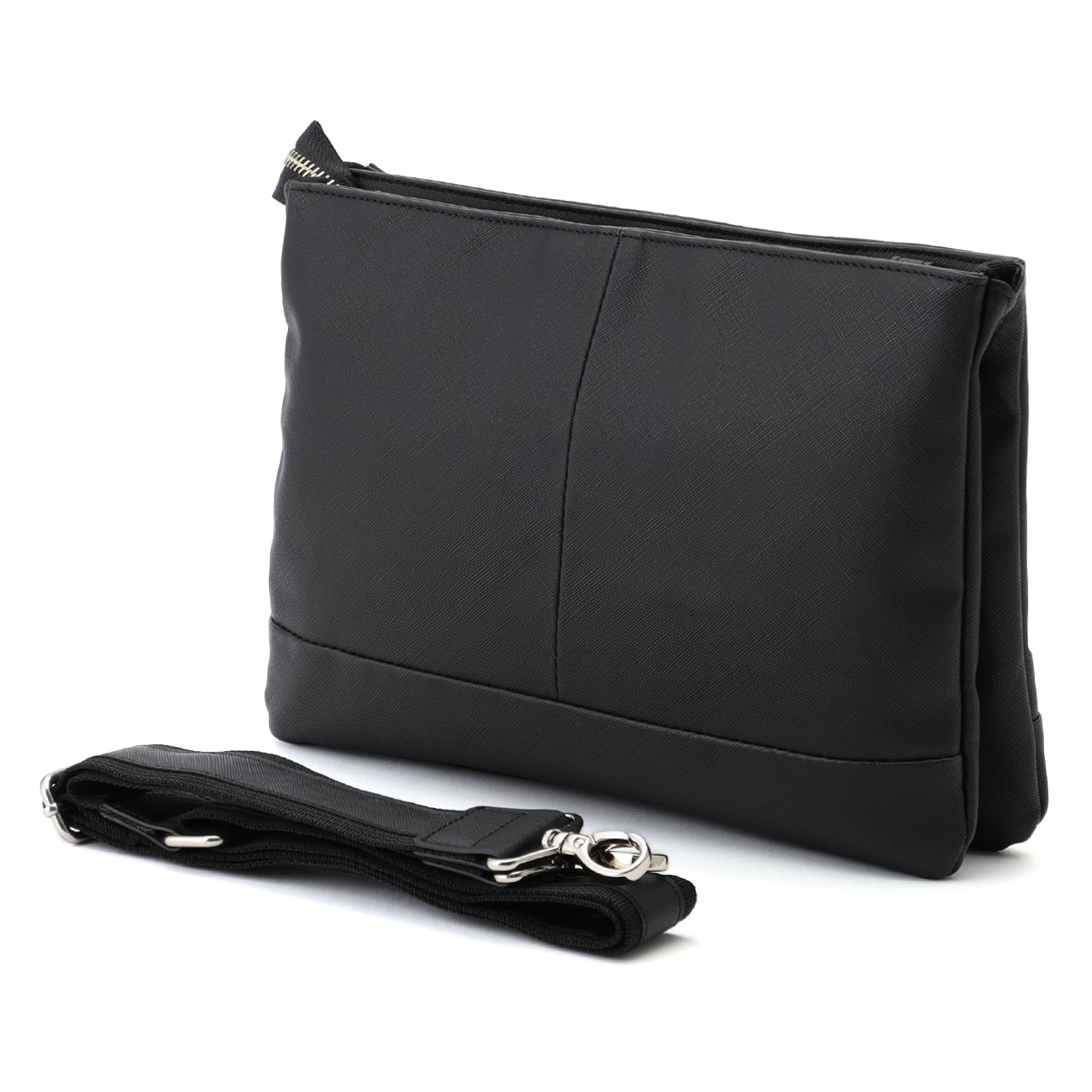 シンプルな黒の革製バッグ・就職活動や転職活動におすすめ少しスタイリッシュなデザインがいい、書類と携帯や財布などの手荷物を分けて入れたい方におすすめ。入学式から就職活動、入社式、研修、通勤まで長期間で使える、シンプルで非常に使いやすいバッグです。〇ハンドル長さ調整可能ハンドルの長さが3段階調節できるため、手で持つ場合・肩にかける場合などシーンに合わせたベストな長さを簡単に調整できます。ハンドルの高さ短い場合:20cm中間の場合:22cm長い場合:24cm〇2層構造1層はファスナーによる開閉、もう1層はスナップで簡単に開閉ができるため、大切な書類とすぐに取り出したい携帯などの荷物を分けて入れることができます。〇自立型自立型(スタンドタイプ)・底鋲付で、床に置いた時でも倒れにくく面接時も安心です。