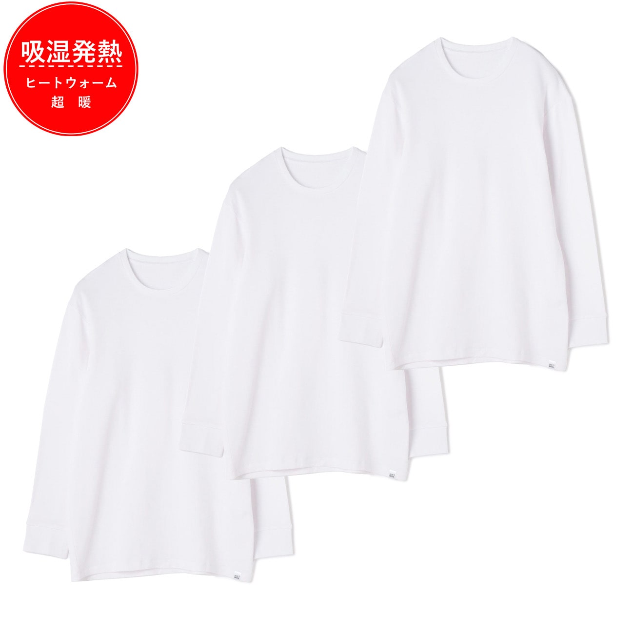 3枚セット ヒートウォーム超暖 発熱・保温ストレッチ 9分袖シャツ クルーネック 白