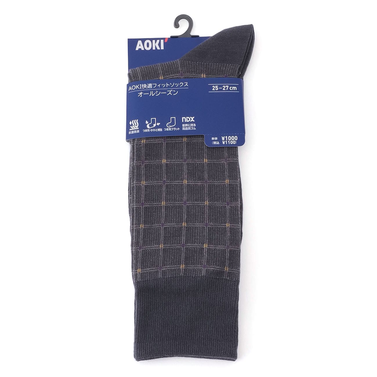 AOKI快適フィットソックス・抗菌防臭加工付きカジュアルテイストの柄をビジネス仕様にデザインしたオールシーズン着用できるフィットソックスです。--------------------抗菌防臭臭いを抑える抗菌防臭加工つま先・かかと補強つま先・かかと部分を補強仕様つま先フラットつま先内側の縫い目がフラットでゴロつきを感じにくい仕様フィットゴムゴム糸にフィット感に優れた「NDX」ゴムを使用<NDXの特徴>ナイガイの高品質なゴムです。・ソフトに伸び、速やかに縮みます。締め付けが強くないのに、ズレ落ちにくい快適な着用感・着用と洗濯を繰り返しても、他のゴム糸より長く張力を保持。履き口部分は、他のゴムより1.5倍長く使えます(メーカー測定結果より)--------------------【お取り扱い上のお願い】〇濃色は淡色と分けてお洗い下さいませ。〇商品は裏返してお洗い下さいませ。〇塩素系漂白剤は使用しないで下さいませ。〇すすぎは十分に行って下さいませ。〇脱水は短時間でお願い致します。〇タンブラー乾燥はお避け下さいませ。〇口ゴム部を上にして日陰でつり干しにして下さいませ。〇摩擦により色落ちする恐れがありますので、ご注意くださいませ。〇商品の特性上、糸が表面に飛び出す可能性がございます。