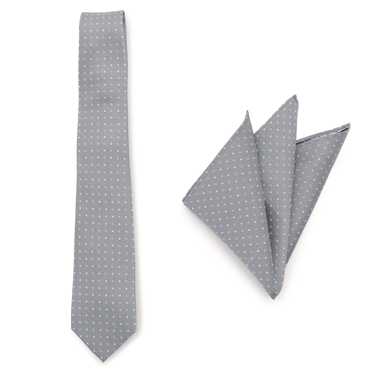 パーティーシーンや結婚式におすすめのナロータイ大剣幅7cmのフォーマルなシーンに最適なナロータイ。艶やかな光沢が美しいシルク100%。共生地のチーフが付いているため、ネクタイと合わせてご着用いただくとコーディネートに統一感が生まれます。胸元をスッキリさせシャープな印象、スリムスーツ・スリムシャツと組み合わせると、よりシャープなシルエットでおすすめです。▼カラーLグレー:ライトグレーの色味