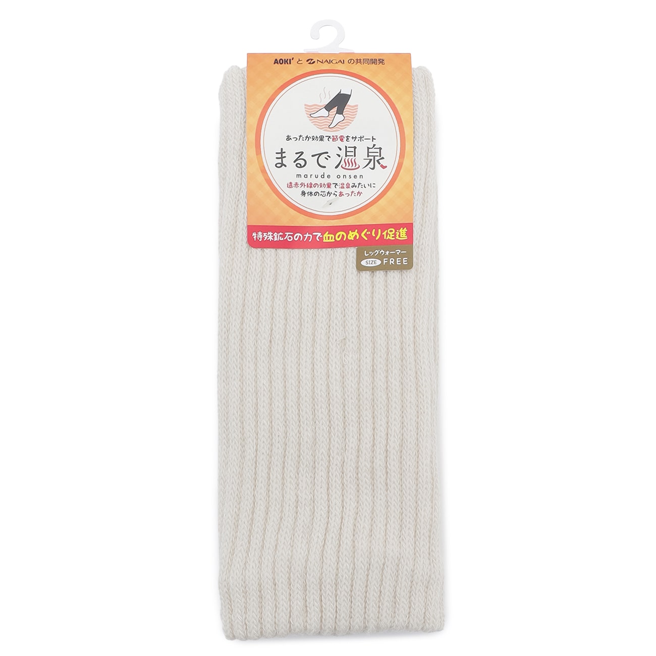 冬の寒さと節電対策に!遠赤外線の力を活かした「まるで温泉」2重編みレッグウォーマー◆企画者コメント◆AOKIとNAIGAIで共同開発した、あったか効果で節電をサポート「まるで温泉」シリーズ新登場です!遠赤効果でまるで温泉や足湯につかっているような温かさが持続する2重編みレッグウォーマーです。〇遠赤外線が血行を促進プリントされた「テラヘルツ鉱石」が放つ遠赤外線は血行の促進が期待できます。※本品自体に発熱する機能はありません。〇温かさの秘密「足首」を、2重編みの保温力と血の巡りを促進する特殊な鉱石プリント(ふくらはぎ側に使用)のチカラでまるで温泉につかっているような温かさが持続します。〇冬のあったか節電アイテム快適に過ごしながらも光熱費をカットできる。電気を使わないから場所を選ばず寒さ対策ができるのも魅力。寒さを感じたらさっと履くだけ!あったか冬のイチオシアイテムです。--------------------▼機能〇 洗える(洗濯機洗浄可)〇 保温
