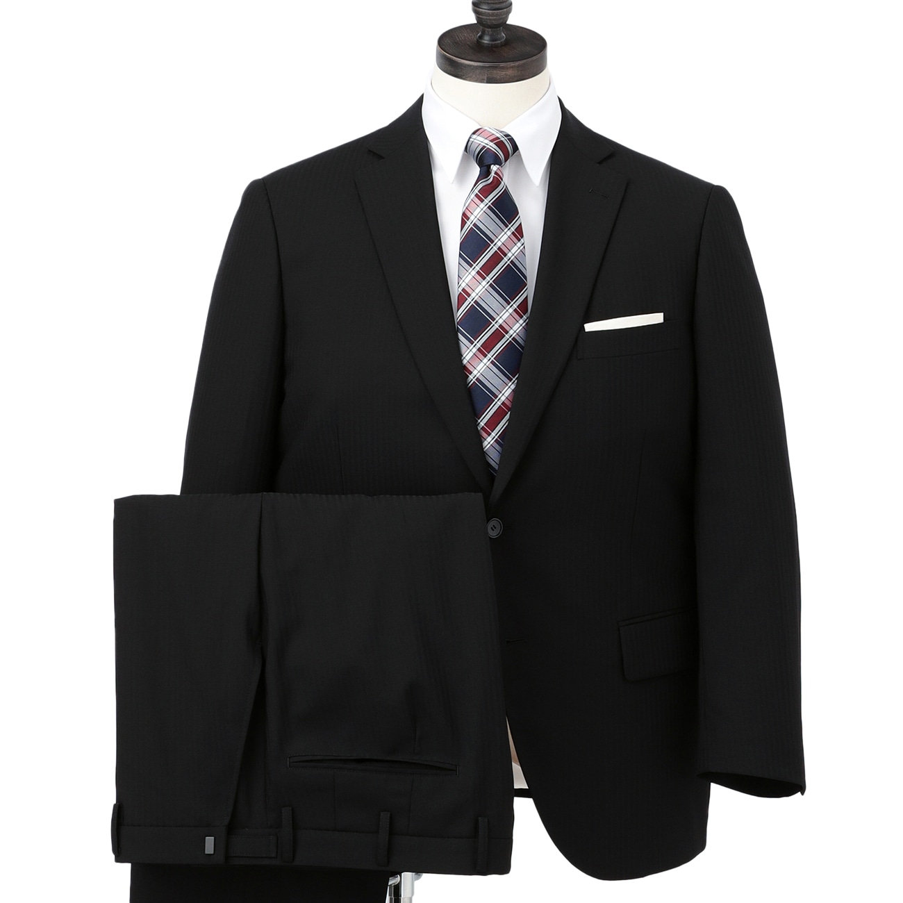 洗濯機で洗える!さりげなくおしゃれな黒のシャドーストライプ柄のウォッシャブルスーツ〇スリムスタイル適度な肩幅、ウエストを細く絞ったスリムスタイルです。〇ウエストらくらく仕様パンツのウエストベルトに特殊な仕様とストレッチ芯を使うことで、ウエストストレッチの快適な着用感を実現しました。〇ストレッチ袖裏平滑性、ストレッチ性が高い裏地を使用。裏地のストレッチ性と連動して伸びるため、快適な着用感です。〇洗えるスーツ仕事終わりに、休日に、洗濯機で簡単に洗えます。スーツは自宅で水洗いして、日々の汚れやにおい、花粉・菌・ウイルスを洗って落とし、いつでも清潔に。--------------------▼サイズ感スリム「LES MUESスマート商品」と比較すると、ジャケットは着丈・袖丈がやや長く、肩幅は狭くなっています。パンツについては渡り幅・膝幅・裾幅がやや大きくなっています。▼仕様ジャケット:センターベント・背抜きスラックス:ノータック・アジャスター付き※パンツのウエストにはアジャスターが付いており、左右±6cm幅で調整ができます。▼生地の厚さ普通▼機能〇洗える(洗濯機洗浄可)〇ストレッチ〇ウエストアジャスター--------------------※こちらは裾のお直しが必要な商品です。ミシンでの補正をご希望の場合は「お直しの選択」ボタンよりお選びください。またお急ぎの場合はアイロンで裾上げができる、裾上げテープもご用意しております。※本商品にはハンガーが付属します。保管用カバーは付属いたしませんのでご了承ください。お求めの方はこちら。こちらの商品の自社旧価格は2023.08.07〜2023.09.03の期間の販売価格となります。