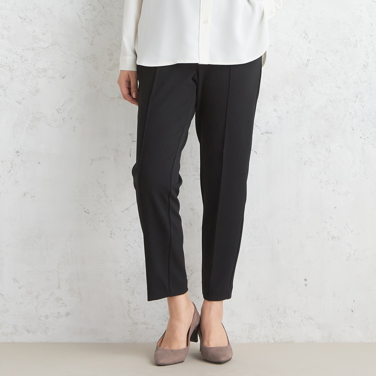 センターラインが脚長・細見えを叶える!「見ためスーツ、着心地パジャマ」をコンセプトに、パジャマの快適さとスーツのフォーマルさを兼ね備えた「パジャマスーツ」シリーズのパンツ。〇すっきり・細見えを叶える万能クロップドデザイン・きちんと感のある着こなしが叶うピンタッククリースライン・サッと履くだけで程よく上品にキマる、大人な印象に仕上げたプルオンパンツ・別売りのロングベストとセットアップで着用可能〇上品で大人っぽい素材・ふくらみ感があり、しっかりとしたジョーゼット組織のジャージー素材・清潔で経済的な自宅で洗えるウォッシャブル仕様・軽くしわになりにくいストレッチ素材でストレスフリー--------------------▼仕様裏地なし、脇ポケットあり※裾上げ済のため、お裾補正なしでお召しいただけます。 股下丈については「サイズスペック」をご確認ください。▼機能〇 洗える(洗濯機洗浄可)〇 2wayストレッチ(タテヨコに伸びる素材で動きやすい)〇 UVカット性のある素材で紫外線からお肌を守る--------------------▼セットアップ商品 別売りロングベスト:品番2334VE106▼同素材の商品ジャンパースカート:品番2334OP106--------------------▼スタッフ着用コメント@身長159cm 普段のサイズ:S/本商品着用サイズ:Mスタッフコーデはこちら「ヒップラインを拾いたくないのでいつもより1つ大きいサイズを着用しています。締め付けなどはなく とても着やすい◎丈の長さは補正なしでくるぶしが隠れるくらい。オールシーズン着れそうな生地の厚さ。色違いのベージュは明るい色なのでインナーの響きが少し気になりましたがシームレスのものをご着用されると軽減されます。」A身長162cm 普段のサイズ:S/本商品着用サイズ:Sスタッフコーデはこちら「【サイズ感】・いつものサイズ選びです。・ウエスト後ろがゴム仕様で楽ちんです。・裾直しなしで着用しています。【素材感】・柔らかい生地の触感です。・軽い履き心地でリモートワークにも最適です!」B身長167cm 普段のサイズ:S/本商品着用サイズ:Sスタッフコーデはこちら「ふくらはぎが張っているのが悩みですが、Sサイズでキレイに着れました。股上は深くウエストはゴム仕様です。裾丈は補正無しでくるぶしがしっかりと出る長さです。ストレッチ性が高く、しゃがんだり、座ったりがとてもラクなボトムスです。」--------------------