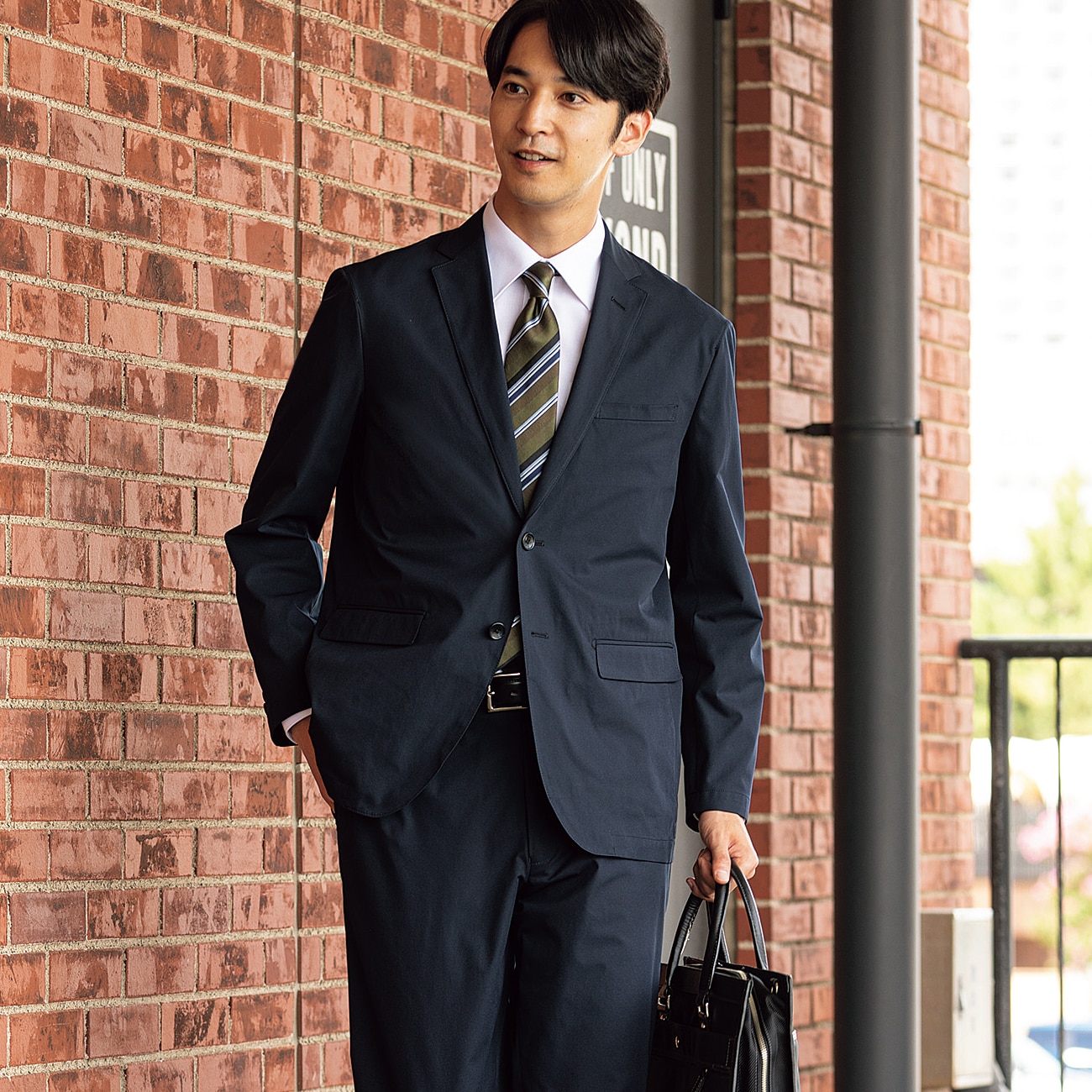 JOURNAL WORKS 自宅で簡単 洗えるスーツストレッチ感のある表地が快適 スリム・細身のシルエットベーシックなデザインと機能性を併せ持ったコストパフォーマンスに優れたJOURNAL WORKSのスーツです。適度にストレッチ感のある表地が、日常の動きを妨げません。また、洗ってもしわになりにくく、お手入れも簡単です。〇洗えるスーツ仕事終わりに、休日に、洗濯機で簡単に洗えます。スーツは自宅で水洗いして、日々の汚れやにおい、菌やウイルスを洗って落とし、いつでも清潔に。〇JOURNAL WORKS ポリエステル素材の特徴@ドレス素材調で適度なハリ感・コシのある素材Aウールと遜色のない色柄表現B高いストレッチ性があり、シワに強い--------------------▼仕様ジャケット:センターベント・背抜き裏地・ストレート台場・マルチポケットパンツ:ノータック※ローライズパンツのため、お腹周りの圧迫が軽減されます。※お届け商品の付属タグに「ウエストの実寸は表示サイズより+2cmで仕上がっています」と記載がございますが、WEBページ上ではウエストサイズは元々+2cmで記載しておりますのでご安心くださいませ。▼サイズ感スリム(当社比で細めのサイズ)▼生地の厚さ普通▼機能〇洗える(洗濯機洗浄可)厳選された素材と、特殊縫製・加工を施すことで家庭洗濯を実現。〇表地ストレッチ表地にストレッチ生地を使用。--------------------※補正について※当製品は素材の特性上、ウエスト伸ばしはお受けできませんので、ご了承ください。※こちらは裾のお直しが必要な商品です。ミシンでの補正をご希望の場合は「お直しの選択」ボタンよりお選びください。またお急ぎの場合はアイロンで裾上げができる、裾上げテープもご用意しております。※本商品にはハンガーが付属します。保管用カバーは付属いたしませんのでご了承ください。お求めの方はこちら。