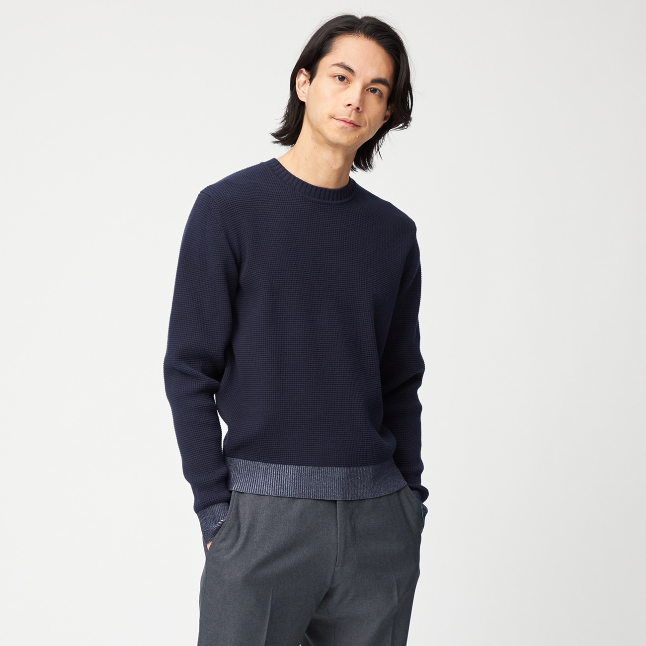 【L&Wデザイン】洗える 畦編みクルーネックセーター