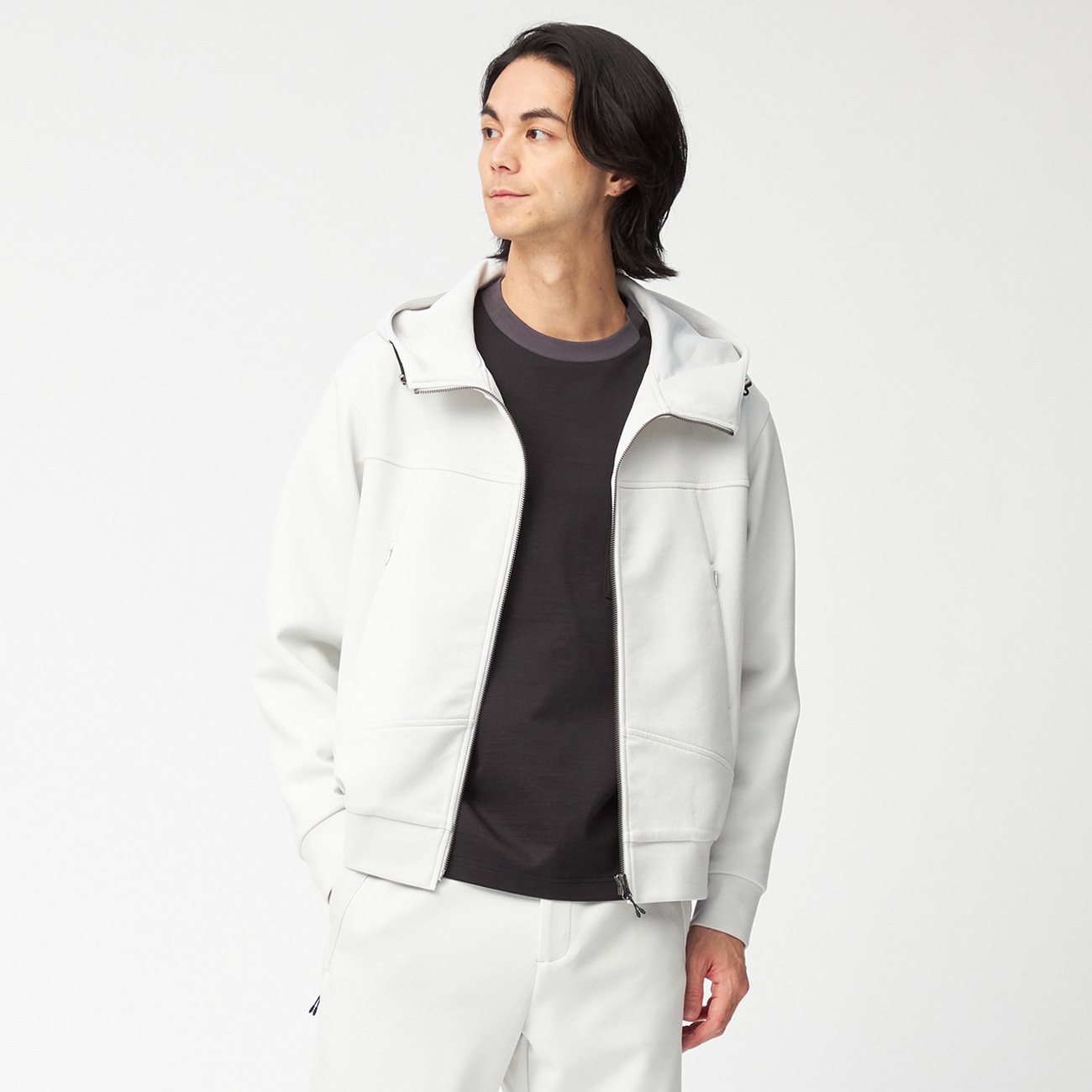 カジュアル、アウトドアスタイルとも相性抜群なフルジップパーカーストレッチ性があり、しなやかさ、肌触りの良さが特徴のジャージー素材のフルジップパーカーです。〇フルジップパーカートレンドを程よくミックスした、スポーティーなフルジップパーカーは上品でスタイリッシュ、大人な印象で着用できます。さらに着用時期も長く、着回ししやすい、汎用性の高さも魅力的な一着です。〇ややゆったりシルエットシルエットはややゆったり、ストレッチ性のあるカットソー素材でアウターライクなデザイン。ルームウエア、ワンマイルウエア、リラックスウエアとしてもおすすめです。--------------------▼セットアップ共布地のジョグパンツと合わせて、セットアップでの着用もおすすめです。ジョグパン:品番22WLWJG1▼おすすめコーディネート上品で滑らかな生地感のウール調スタンドカラーコート、ウール調チェスターコートの下に着用し、スニーカー合わせでコーディネートするのも今年らしくておすすめです。--------------------▼機能〇 洗える(洗濯機はネット使用)〇 ストレッチ--------------------▼スタッフ着用コメント@身長169cm 普段のサイズ:S/本商品着用サイズ:Lスタッフコーデはこちら「・標準的なシルエット。・適正サイズはMサイズですが今回はオーバーサイズで着用しています。・優しい肌触りで動きやすさ抜群です。A身長174cm 普段のサイズ:M/本商品着用サイズ:Lスタッフコーデはこちら「Mも着てみましたが、パーカーはユッタリと着るのが今どきのトレンドのようなので、敢えてLを着用して撮影しました。袖は長めですが、着丈はスッキリ短めです。」B身長180cm 普段のサイズ:M/本商品着用サイズ:Lスタッフコーデはこちら「今回のサイズLでパーカーを着ても丁度良いです・タイトに着たいならサイズ下げても良いですが袖丈と着丈に注意して下さい。」--------------------