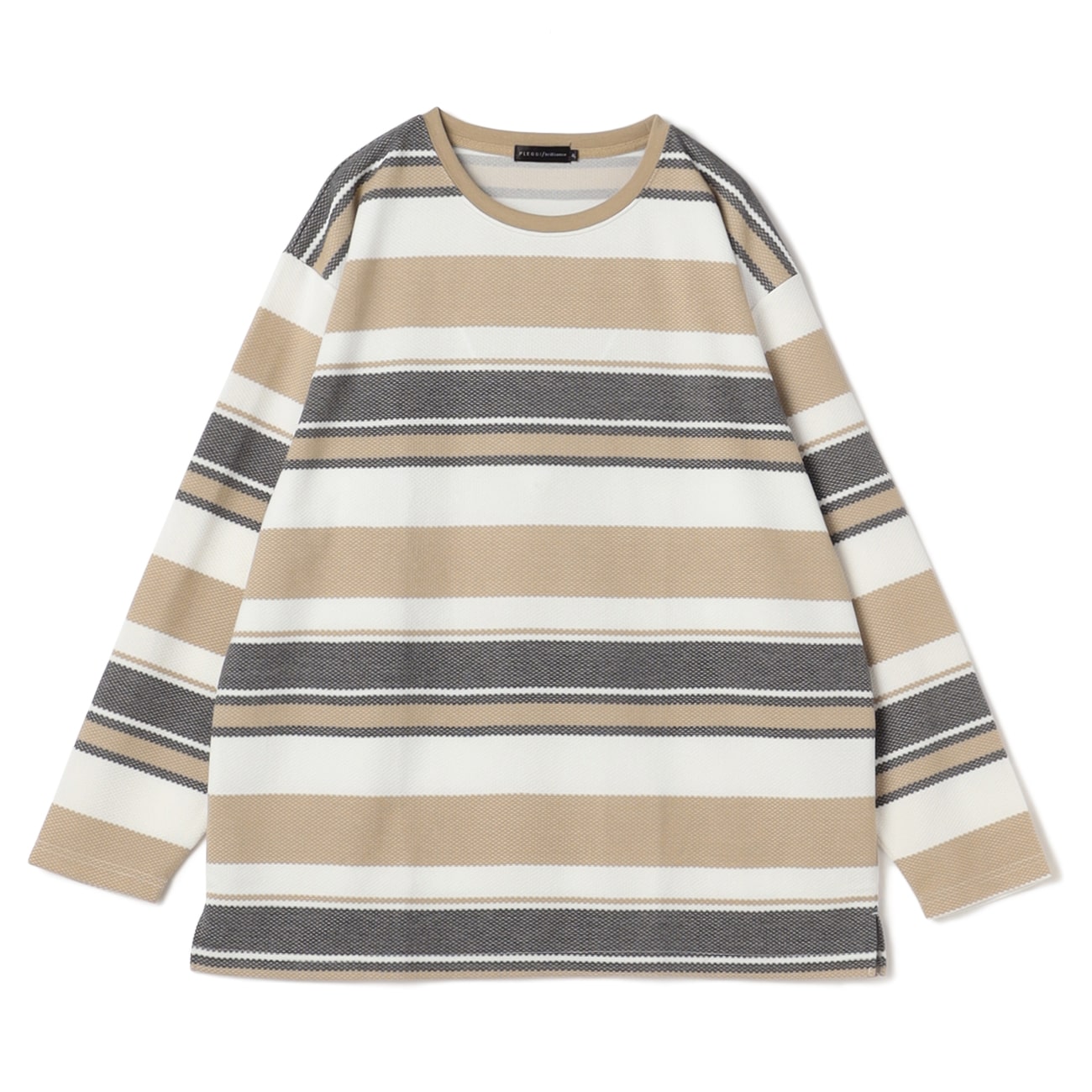 おしゃれ感のあるボーダーTシャツボーダーのデザインが一枚でも、アウターのインナーとしても着こなしのアクセントになります。立体感のある生地は柔らかく、サラッとした肌触りで着用感も快適です。環境に配慮したサスティナブル素材を使用しています。どんなスタイルにも合わせやすい、落ち着いたカラーリングのアイテムです。〇サスティナブル素材・廃棄ペットボトルから作られたリサイクル繊維素材を使用しています。・製造過程において従来よりも少ない水と温室効果ガス排出量を軽減し、環境に配慮しています。・REPREVEによってこれまでに100億本以上のペットボトルがリサイクルされています。--------------------▼機能〇洗える(洗濯機洗浄可)