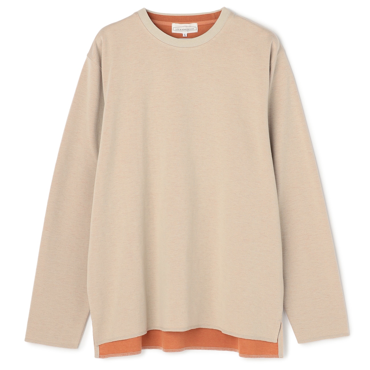 1枚でもサマになる!ジャケットとの相性も◎毎シーズン大好評のダブルフェイスTシャツ。〇裏面の配色がアクセント表地と裏地の配色を切り替えたダブルフェイスTシャツ。大人カラーがシンプルながらもおしゃれ。〇ややゆとりのあるリラックス仕様裾と袖のリブを無くし、軽やかな着用感。トレンド感のあるややワイドなシルエット。裾にはスリットをあしらい、リラックスムード溢れる一枚です。1枚で着ても、ジャケットやパジャマスーツのインナーに着てもサマ見えします。--------------------▼機能〇 洗える〇 抗菌防臭(臭いを抑える抗菌防臭加工)--------------------【お取り扱いのご注意】素材の特性上、連続着用や過度の摩擦が加わりますと、毛玉(ピリング)が発生する場合があります。毛玉取り器やハサミでカットしてください。--------------------▼スタッフ着用コメント@身長165cm 普段のサイズ:M/本商品着用サイズ:Mスタッフコーデはこちら「手触り柔らかく着心地が更に良くなりました!カラーもライトカラーでインナーとしても、一枚で着ても着回し抜群ですサイズ感は標準的です、普段のサイズで選んで大丈夫です。」A身長175cm 普段のサイズ:L/本商品着用サイズ:Lスタッフコーデはこちら「クルーネックの半袖Tシャツです。普段使いも、ジャケットに合わせてビジカジスタイルにも使えます。綿100%の肌触りの良いTシャツです。化繊が苦手な方に特におすすめです。」B身長186cm 普段のサイズ:M〜L/本商品着用サイズ:Lスタッフコーデはこちら「柔らかい素材の柔らかタッチの長袖Tシャツ。表地と裏地の配色が違うダブルフェイスのデザイン。トップスとしても優秀で、インナーとしても着回し出来ます!」--------------------