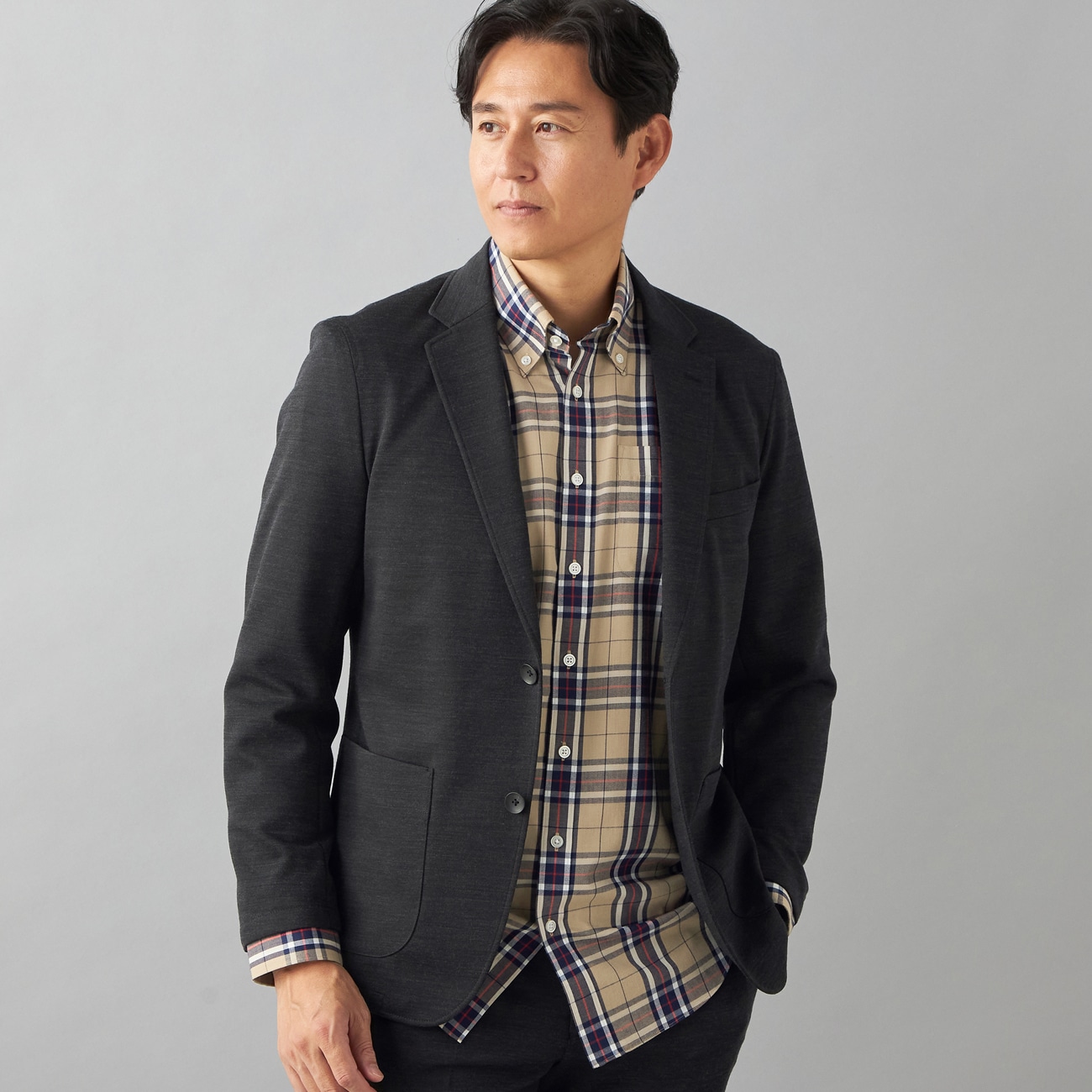 AOKIのロングセラー商品「洗える」シリーズの快適ジャケット・セットアップでも着用できる〇凹凸のある表地単品使いでもお召しいただけるように凹凸のある表情豊かな生地を使用。ポリエステルを入れることで防しわ性と耐久性も◎〇ストレスフリーな着心地生地・袖裏・背裏すべてをストレッチに。連動して伸びることで抜群の着用感を実現。〇いつでもキレイをキープ、お手入れ簡単家庭洗濯可。仕事終わりに、休日に、洗濯機で洗えて、汚れや汗、においも取れていつでも清潔。また、アイロン掛けがほぼいらずお手入れ簡単!〇ナチュラルショルダー肩回りの形状を通常より丸みの帯びたシルエット。丸みのあるシルエットがナチュラル感を演出し、ビジネスからカジュアルスタイルまで幅広く着回しが可能。〇軽量仕立て肩パットなど内蔵物を可能な限り省き、軽量化。負荷を感じさせない着心地を実現。〇シルエットバランスやや短めの着丈、高めのウエストラインなど、よりカジュアル感を演出。ビジネスからカジュアルスタイルまで幅広く着回しが可能。--------------------▼仕様背抜き裏地・センターベントこちら品番G231K576は力ボタンなしの仕様になります。力ボタンありをお探しの方はこちら:品番G212K576※「力ボタン」とは、ボタンの裏に付いている小さなボタンのことです。▼サイズ感当社比でスリムめのサイズ▼機能〇洗える(洗濯機洗浄可)〇ストレッチ〇防しわ〇パワーネット--------------------▼セットアップ 別売りパンツ:品番S222K970--------------------※本商品にはハンガーが付属します。保管用カバーは付属いたしませんのでご了承ください。お求めの方はこちら。※動画はスーツの洗い方ですが、ジャケットのみでも同様となります。---------------------▼スタッフ着用コメント@身長173cm 普段のサイズ:AB6/本商品着用サイズ:AB6スタッフコーデはこちら「凹凸のある表情豊かな素材感でコーディネートしやすいジャケットですよ。ポリエステル混紡なので防しわ性と耐久性もあって、お手入れ楽ちんです(^^♪カジュアルでもお仕事でも着れますよ(^^♪もちろんおうちで洗えて、ストレッチ抜群 しかも軽い!!超着やすいですよ〜♪」A身長178cm 普段のサイズ:A6、AB6/本商品着用サイズ:AB6スタッフコーデはこちら「ポイント○洗える○ストレッチ○防しわ、ストレッチもあり、スーツほど堅苦しくなく着用できるのが個人的におすすめです。シャツタイ、ポロシャツ、Tシャツなどインナーを変えれば幅広いコーディネートを楽しめます。」こちらの商品の自社旧価格は2023.08.07〜2023.09.03の期間の販売価格となります。