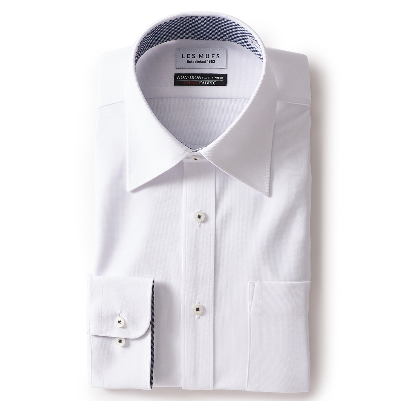 日本製素材 ノンアイロン スーパーストレッチ レギュラーカラーシャツ LES MUES レギュラーフィット