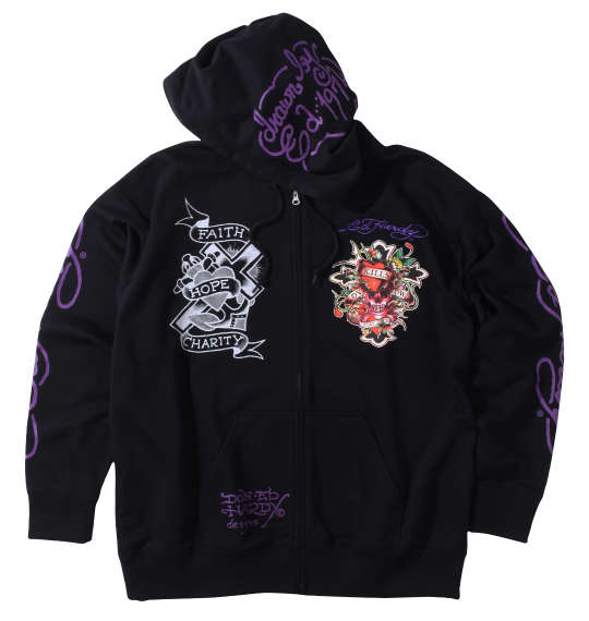 Ed Hardy 裏毛刺繍 & プリントフルジップパーカー