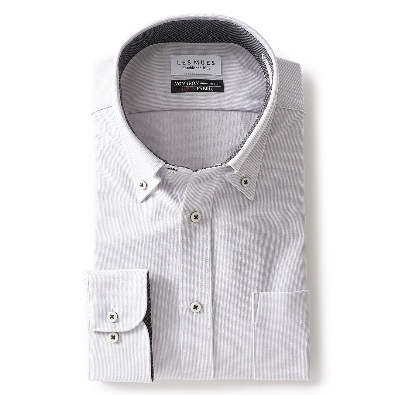 日本製素材 ノンアイロン スーパーストレッチ ボタンダウンダウンシャツ LES MUES レギュラーフィット