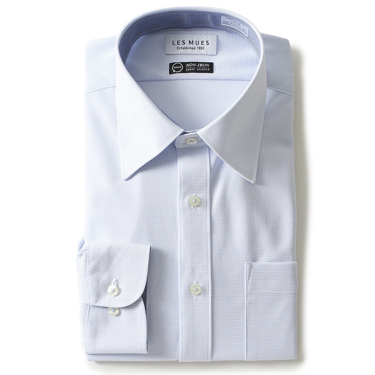 ノンアイロン ストレッチ レギュラーカラーシャツ LES MUES レギュラーフィット 濃色