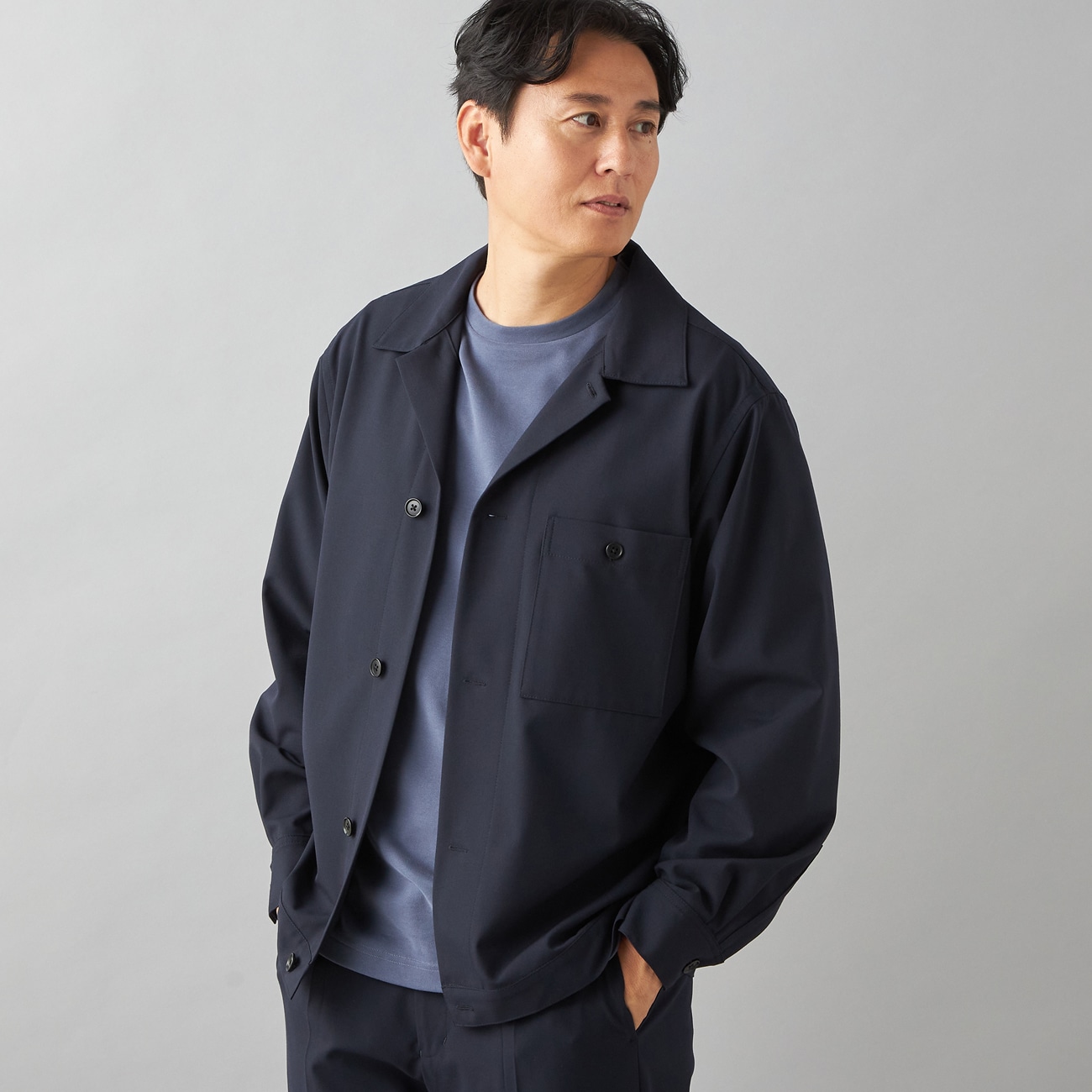 【L&Wデザイン】ウール調シャツジャケット 紺 セットアップ着用可