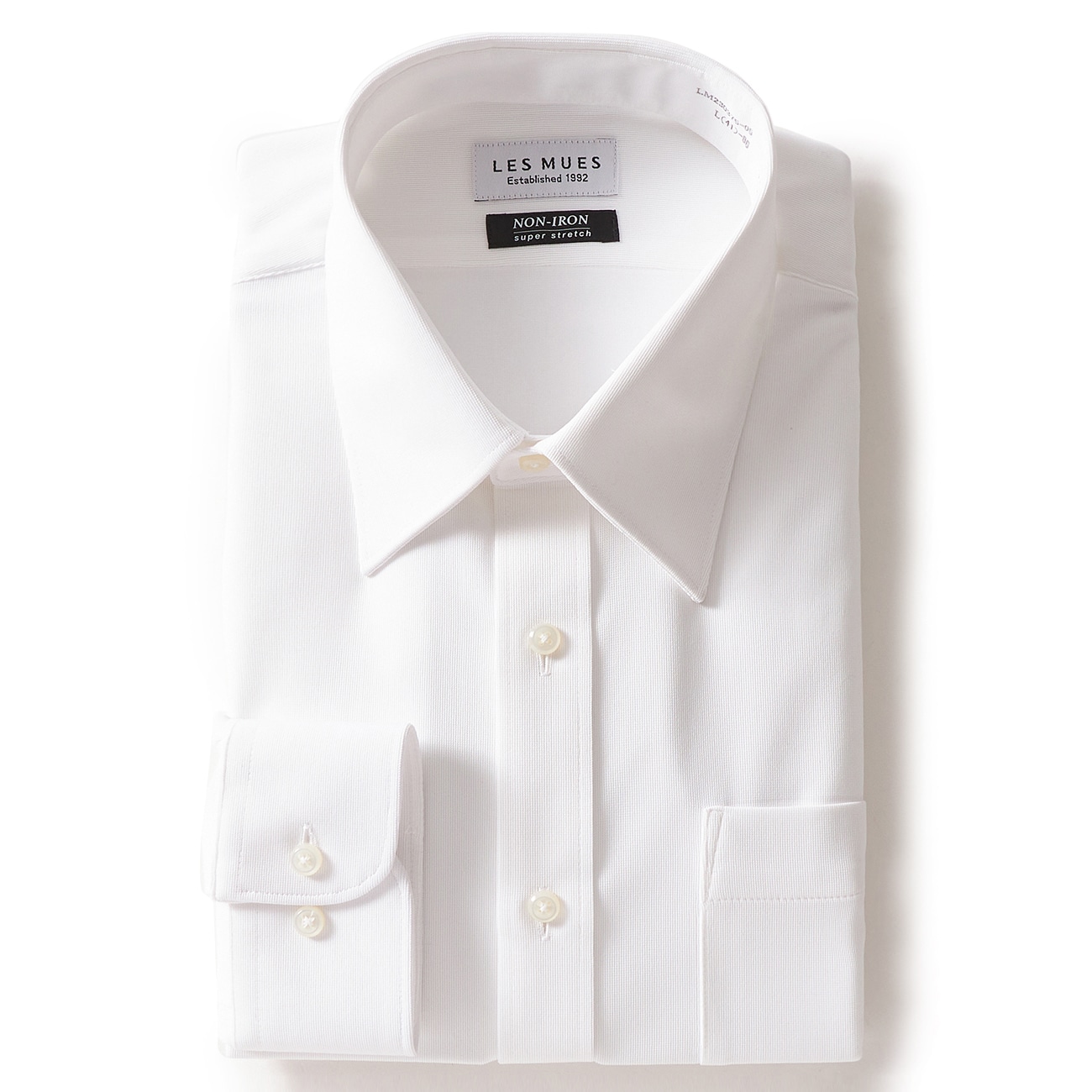 【SizeMAX】形態安定 白無地レギュラーカラーシャツ LES MUES ベーシック