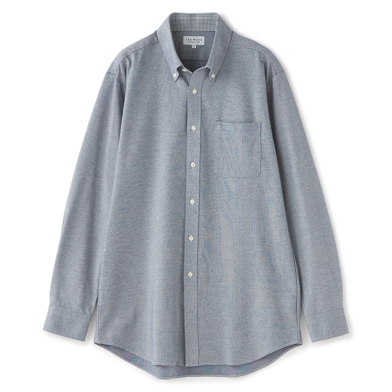 【ビズニットシャツ】ノンアイロン ストレッチ ボタンダウンシャツ 織柄無地 LES MUES