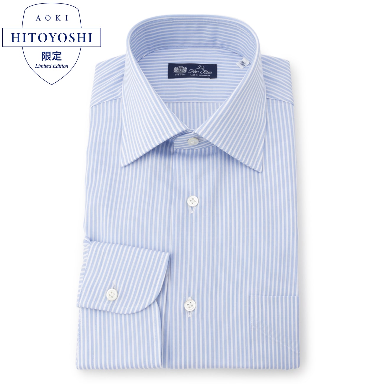 HITOYOSHIメイドインJAPANコレクション限定商品熟練の縫製技術とモノづくりのこだわりが凝縮された一品をお届けいたします。--------------------〇こだわりの日本製日本製ならではの、袖付け・脇縫いは本縫い仕様で、襟とカフス芯はフラシ仕様(フラシとは、生地面に芯地を貼り付けずにソフトに仕立てた仕様です)。〇上質なコットン100%の風合いを存分に活かした素材綿本来の柔らかさ・上質な光沢感・落ち着いた艶感があり、なめらかな触り心地です。〇綺麗な襟立ち熟練の技術により綺麗な襟立ち・襟元のロールがあり、タイドアップスタイルはもちろん、ノーネクタイでも型崩れがしにくいです。〇美しいシルエット立体的なパターンワークで腕が動かしやすく、美しいシルエットに仕上げました。--------------------▼仕様・高瀬貝ボタン使用・メイドインJAPAN・熟練の技術により襟元のロール感に拘ったセミワイドカラー・胸ポケット付き▼機能〇 綿100%〇 立体パターン※ノンアイロン仕様ではありません▼サイズ感HITOYOSHI社の「レギュラーフィット」シルエットとなります。AOKIのレギュラーフィットシャツとはサイズ感が異なりますので、詳しくは「サイズスペック」をご確認ください。--------------------【お取り扱い上の注意】・ボタンは天然素材の高瀬貝を使用しているため、アイロン掛けの際に強い圧力が掛かると割れる場合がございます。ボタンは避けてアイロン掛けいただきますようお願いいたします。
