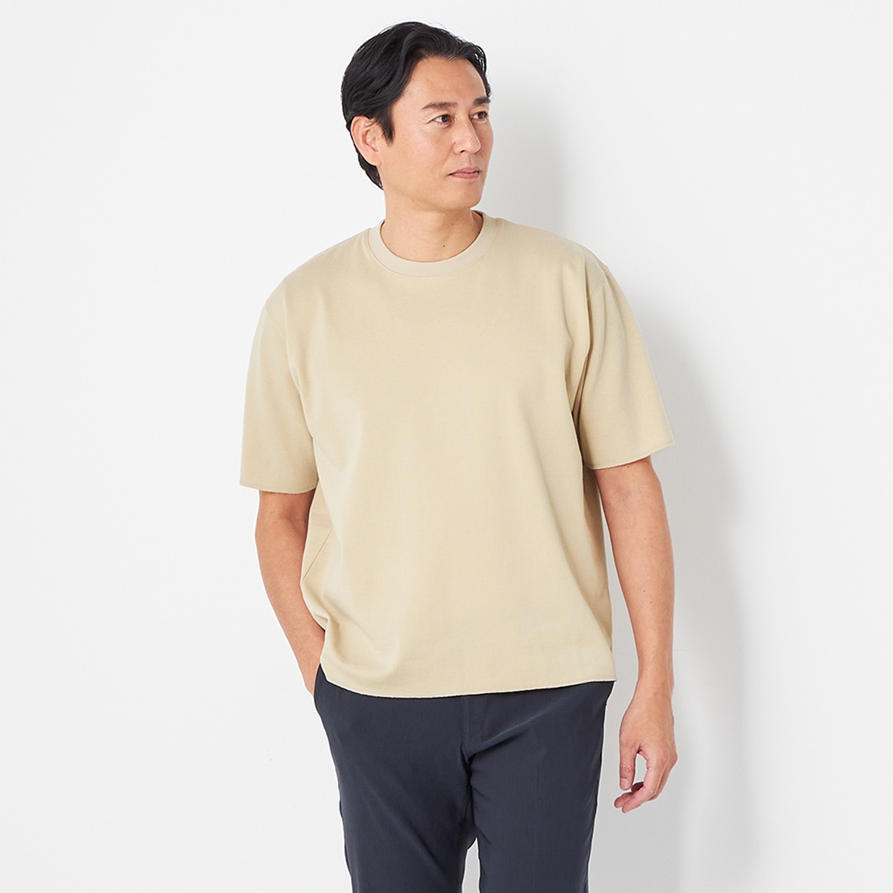 毎シーズン大好評のダブルフェイスTシャツの夏バージョン登場!〇裏面の配色がアクセント表地と裏地の配色を切り替えたダブルフェイスTシャツ。大人カラーがシンプルながらもおしゃれ。〇ややゆとりのあるリラックス仕様裾と袖のリブを無くし、軽やかな着用感。トレンド感のあるややワイドなシルエット。裾にはスリットをあしらい、リラックスムード溢れる一枚です。1枚で着ても、ジャケットやパジャマスーツのインナーに着てもサマ見えします。--------------------▼カラー紺:紺×ブルーベージュ:ベージュ×イエローLグレー(ライトグレー):オフホワイト×ライトグレー▼機能〇 洗える(洗濯機洗浄可)〇 抗菌防臭(臭いを抑える抗菌防臭加工)--------------------▼スタッフ着用コメント@身長175cm 普段のサイズ:M〜L/本商品着用サイズ:Mスタッフコーデはこちら「今回はLグレーで合わせてみました!裾はスリット入りの裏地と表地の配色を切り替えたダブルフェイスTシャツです!1枚でもジャケットインでも着やすいデザインです。仕立て屋Tシャツなどと比較すると全体的に少しゆとりのあるサイズ感です。」A身長179cm 普段のサイズ:M〜L/本商品着用サイズ:Lスタッフコーデはこちら「サイズ感は1つ上にしてるのでややゆったりです。生地感は厚みのあるTシャツで、オーバーめな着こなしがオススメです。」B身長186cm 普段のサイズ:M〜L/本商品着用サイズ:Lスタッフコーデはこちら「大人気の仕立て屋シャツシリーズから、肌触りがしっとりとしていて気持ちいいですね!サイズ感は少しゆったり目ですが今回は1サイズあげてゆったり目に来てみました!」--------------------