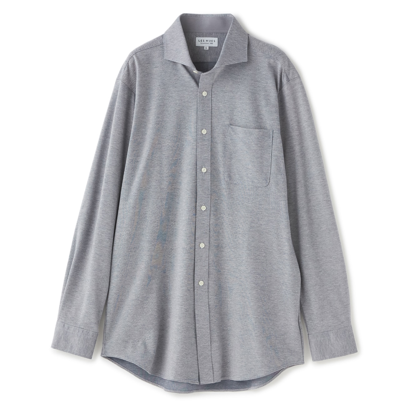 【ビズニットシャツ】ノンアイロン ストレッチ ワイドカラーシャツ グレー織柄無地 LES MUES