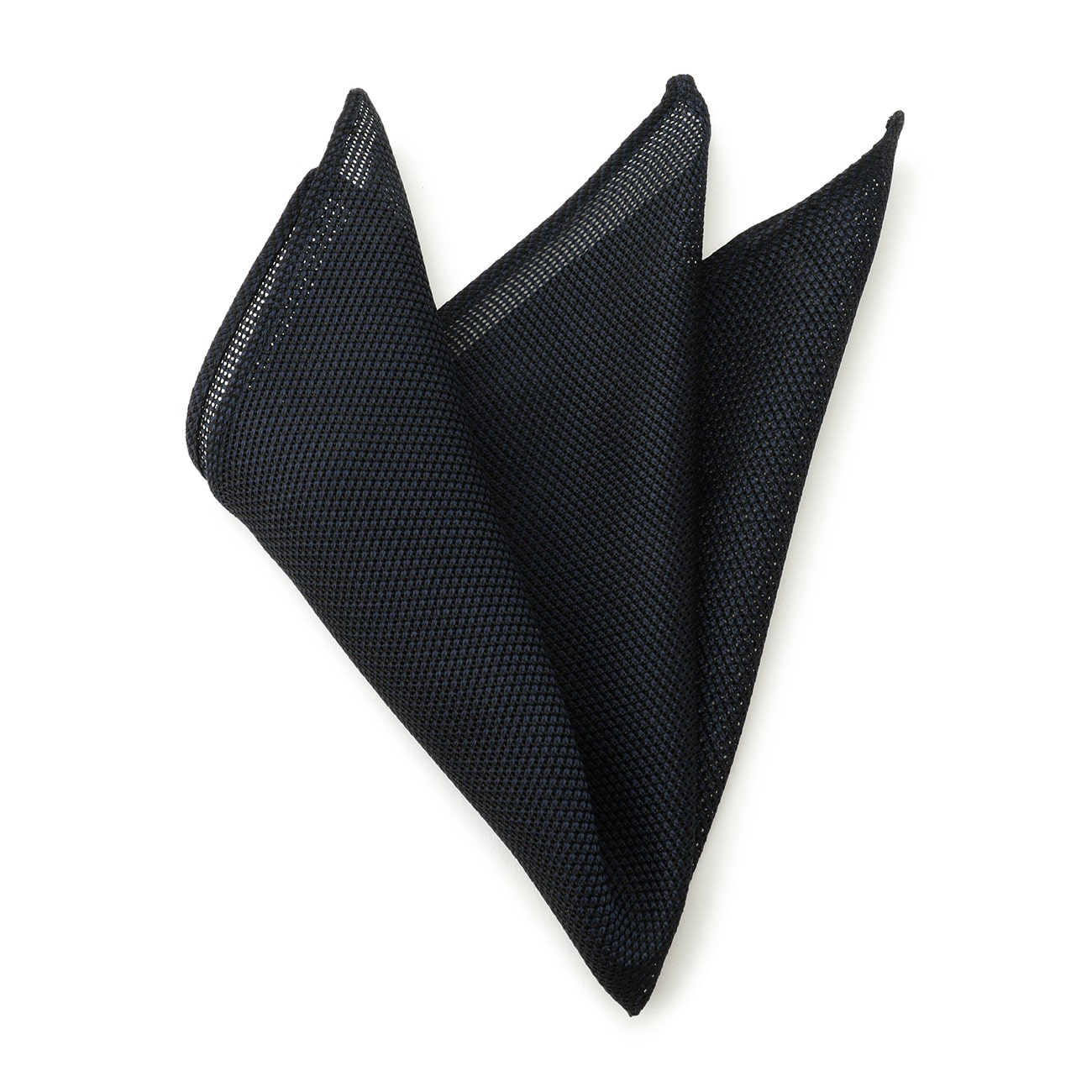 発色あざやかなシルク100%素材スーツやジャケットの胸ポケットに挿し込むことで華やかさがプラスされます。全体的に小さな穴の開いたフレスコ生地で、重なった部分と1枚の部分の見え方が変わります。