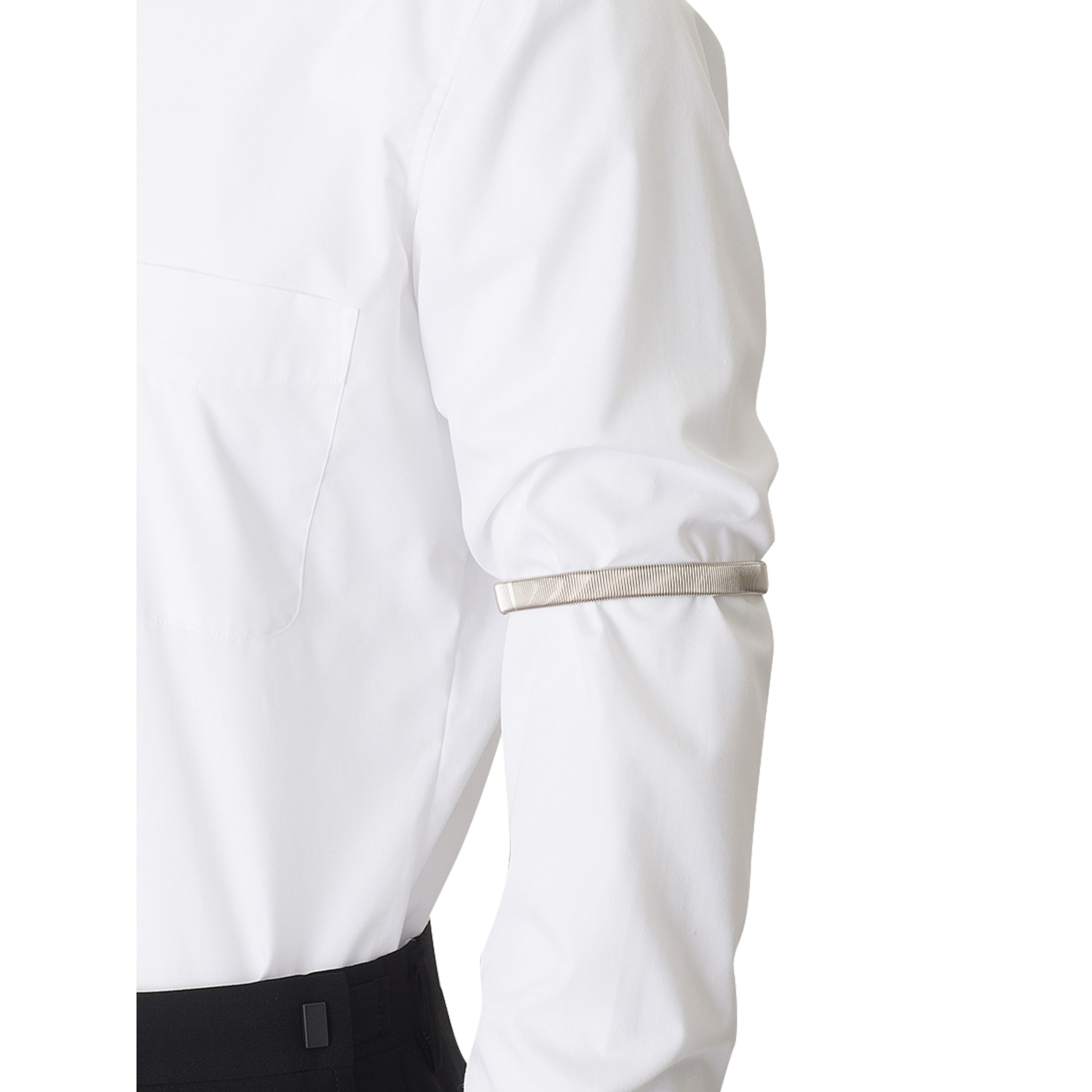 シャツのゆき丈の長さを調節するアームバンドです。腕を通すだけで簡単にシャツの袖長さが調節できます。日本製です。▼仕様両腕用リング式のゴム製