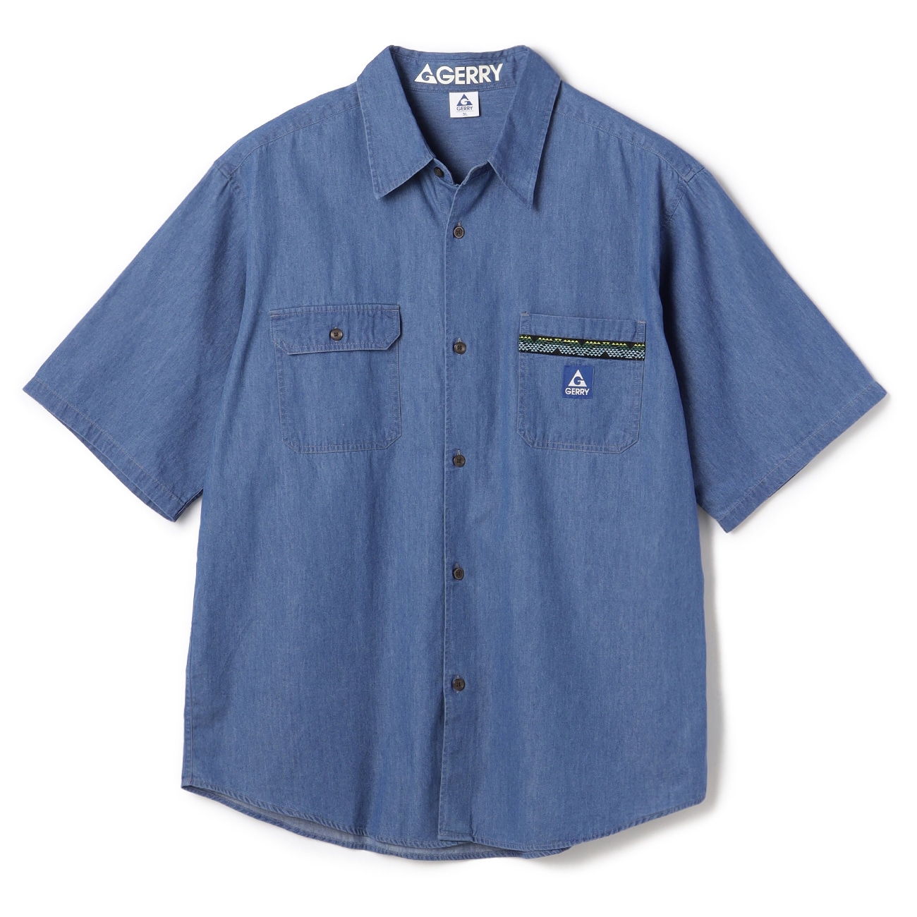 GERRYブランド商品アメリカのアウトドアブランドGERRY(ジェリー)のSize MAX別注商品が新登場!一枚でもインナーとしても使いやすいSize MAX独自シルエット!左右のデザイン違いのポケットがアクセントになったデニム半袖シャツです。右胸にはフラップポケット、左胸にはエスニック柄のラインテープが縫い付けられたポケットがそれぞれ配されています。昔ながらアメカジやアウトドアスタイルを現代風に落とし込んだ一枚。ポケット上と左裾に縫い付けられたロゴネームタグがアクセントになっています。ユルッとしたビッグシルエットで、ユニセックスで着用していただけます。GERRY/ジェリー1950年代のアメリカでスタートしたアウトドアブランド。アメリカのエベレスト登山隊のオフィシャルユニフォームとして採用されたことで、GERRYは一躍注目アウトドアブランドとしてアメリカ中にその名を知らしめました。--------------------▼機能〇 洗える(洗濯機洗浄可)