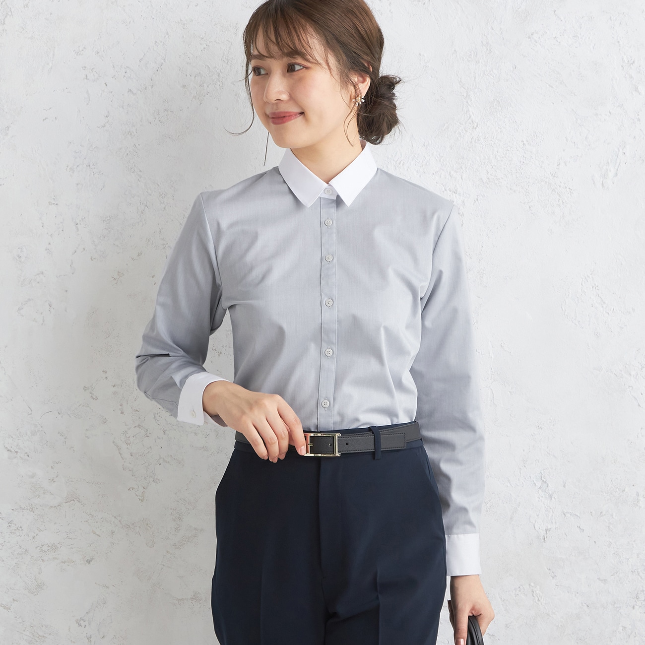 ソフトタッチで着心地快適。ノンアイロンでお手入れも楽〇お手入れ簡単ノンアイロンシャツ・仕事終わりに、休日に、ネットに入れて洗濯機で洗うだけ・干すだけでキレイになるためお手入れ簡単〇クレリックデザイン・襟と袖口のホワイト配色が爽やかなクレリックシャツ・ベーシックな無地柄でジャケットにも合わせやすい--------------------▼仕様 ※当社比透け感…なし裏地…なし伸縮性…あり光沢感…なし生地の厚さ…普通▼機能〇 洗える(洗濯機洗浄可)〇 ノンアイロン〇 ストレッチ〇 柔らかソフトタッチ生地〇 コンシールボタンで気になる胸元の開きも安心--------------------※購入時のたたみジワが気になる場合は軽くアイロンをおかけください。※洗濯はシャツのサイズに合った洗濯ネットに1枚ずつ軽くたたんで入れ、脱水時間を短めに設定し、脱水後はすぐに干していただくときれいにシワが伸びます。--------------------▼スタッフ着用コメント@身長159cm 普段のサイズ:9号/本商品着用サイズ:9号スタッフコーデはこちら「ウエストが少し絞られたスッキリシルエット。わたしはラクに着たいのでジャケットより1つ大きいサイズを選んでいます。首回りの当たりはソフトで チクチク感なし◎透け感は気になりませんでした。」A身長162p 普段のサイズ:7号/本商品着用サイズ:7号スタッフコーデはこちら「【サイズ感】・普段のサイズ選びです。・バストやウエストも程よくゆとりがあります。・体型をひろわないシルエットです。【素材感】・ポリエステルと綿の混紡素材でやわらかいです。・ちくちく感なく、肌触りも良いです◎・首元がつまっていて落ち着きます。・ベージュのインナー合わせがおすすめです。」--------------------