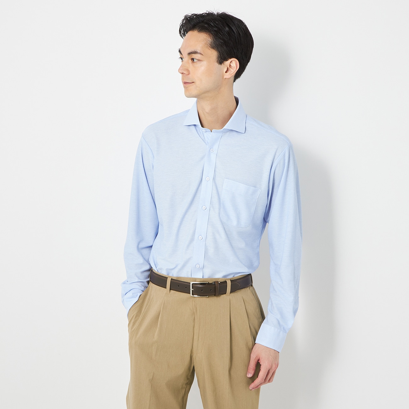【ビズニットシャツ】消臭レーヨン ワイドカラーシャツ LES MUES