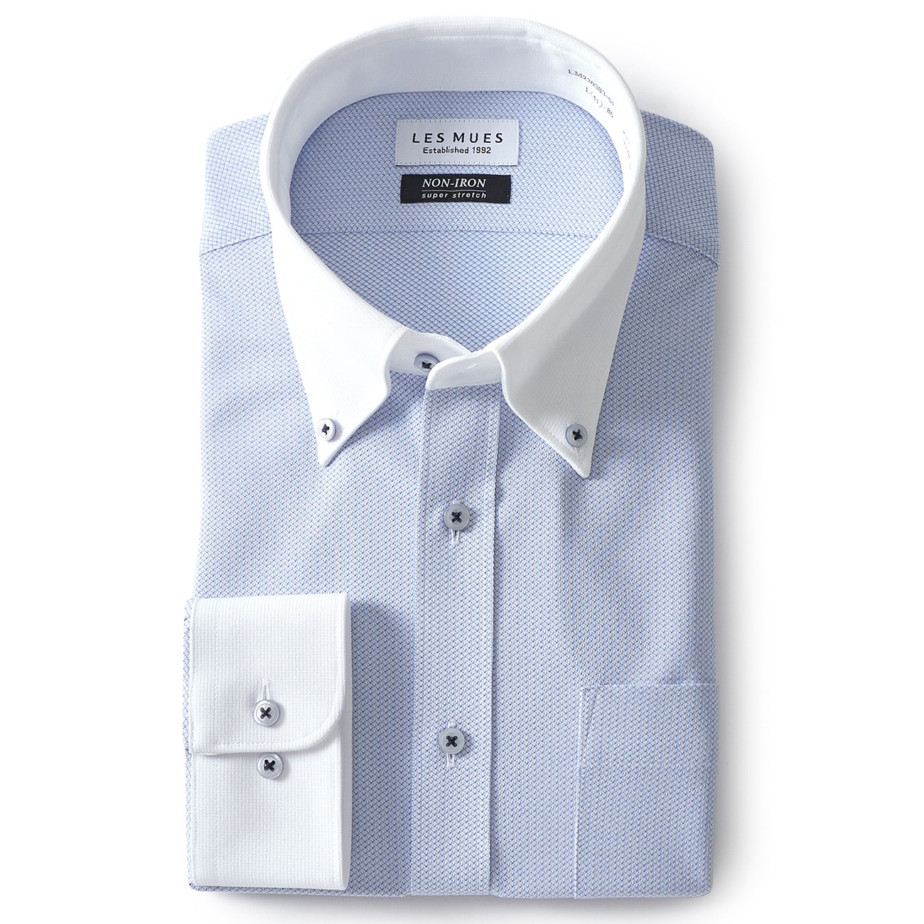 リサイクル素材使用 ノンアイロン スーパーストレッチ ECOPET ボタンダウン クレリックシャツ LES MUES レギュラーフィット