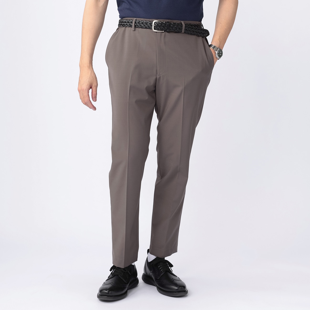 裾上げ済 軽量ストレッチパンツ テーパードノータック セットアップ着用可