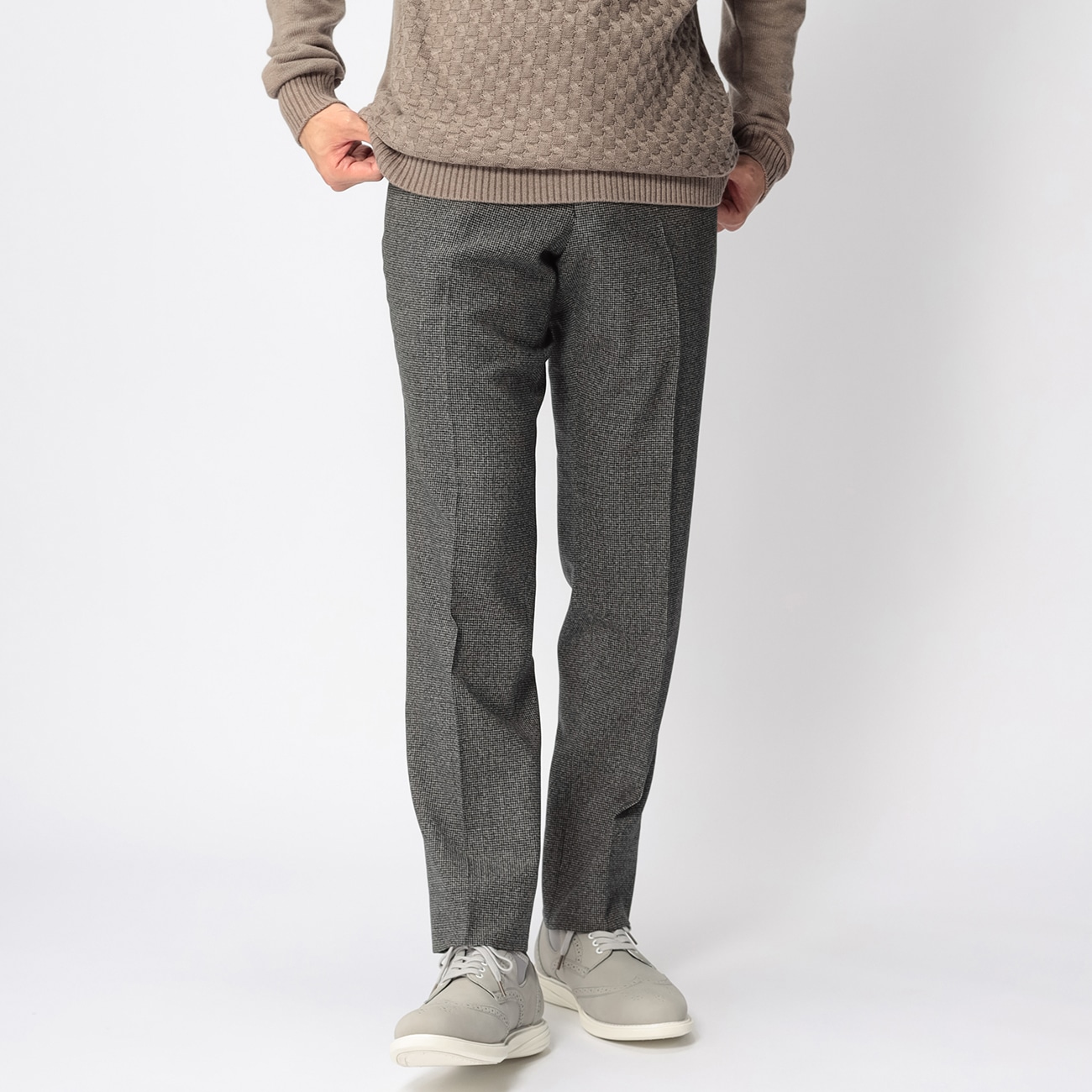 JUNKO SHIMADA JS hommeのインポート素材上質ノータックパンツ・セットアップでも着用できる〇JUNKO SHIMADA JS hommeパリコレクションに30年以上参加し続ける女性トップデザイナー「島田順子」が手掛ける唯一のメンズブランド「JUNKO SHIMADA JS homme」。女性の視点でとらえた男性の美しさを表現した「着て」「見て」美しいシルエットラインが特長です。〇REDA社のウール100%素材を使用表地には1865年創業のイタリアを代表する服地専門メーカーREDA社の素材を使用。ウール100%、艶感のあるなめらかな質感で、美しいドレープが都会的で映えます。きちんと感はありながら、カジュアルでスタイリッシュな装いを楽しめます。--------------------▼セットアップジャケット:品番G222J503 別売り--------------------▼カラー白黒千鳥格子柄▼仕様ノータック(標準)▼機能〇魔法のウエスト 両脇ゴムのため左右約5cmずつ、計約10cm伸びます--------------------※こちらは裾のお直しが必要な商品です。ミシンでの補正をご希望の場合は「お直しの選択」ボタンよりお選びください。またお急ぎの場合はアイロンで裾上げができる、裾上げテープもご用意しております。--------------------【お取り扱い上の注意】この製品はファッション性を重視したデリケートな素材を使用しております。ご着用の際および取扱い時には、次の点に充分ご注意ください。着用中に汗や水分を含んだ状態で摩擦されると色移りすることがあります。水濡れした場合には速やかに乾いた布で軽くたたくように水分を取り、乾燥させてください。