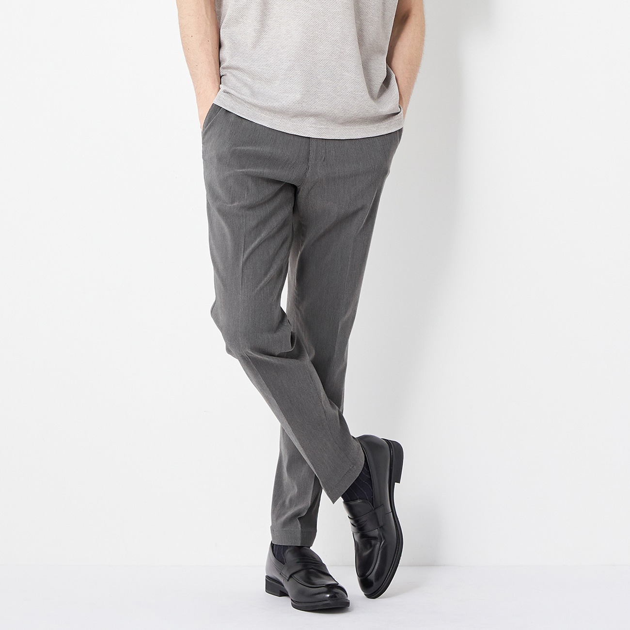 裾上げ不要ですぐ履ける!ストレッチ らくQパンツ テーパードノータック ヘアライン