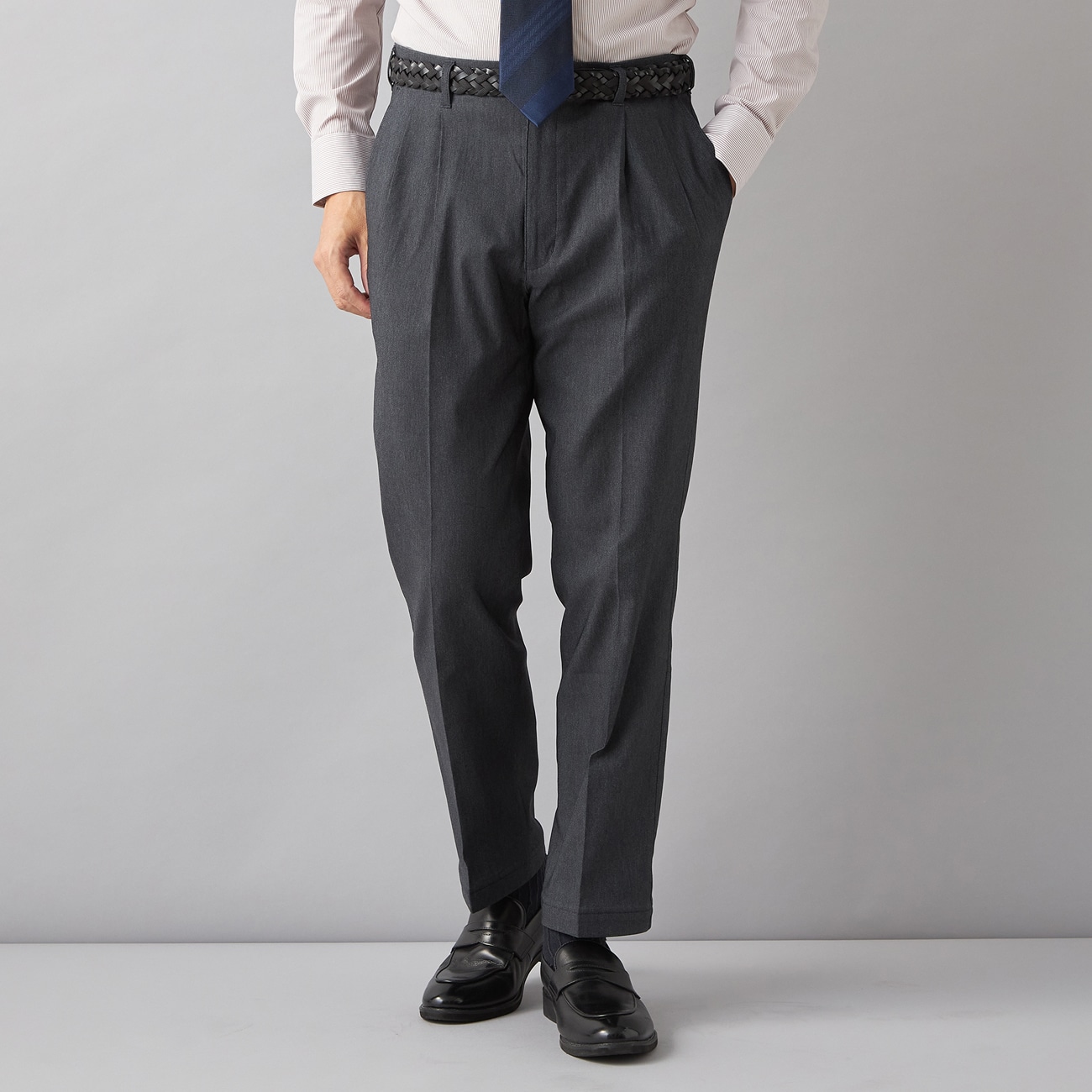 ストレッチ・ウエストらくらく機能付きのノンアイロンパンツ◆企画者コメント◆生地ストレッチに加え、ストレッチ膝あて&ウエストが最大5p伸びるらくらく機能の「体感ストレッチ仕様」、アイロン掛けなしではけるお手入れ簡単な快適パンツです。毎シーズン大変ご好評を頂いておりますウール混素材を使用したストレスフリーなノンアイロンパンツです。洗って干してすぐ着られる「ノンアイロン」でお手入れ簡単。生地ストレッチに加え、ストレッチ膝あて、ウエスト両脇が一部ゴム仕様になっており、左右約2.5cmずつ、計約5cm伸びる使用で快適な着心地です。--------------------▼生地サキソニー生地(薄いツイード調の生地)▼仕様テーパードノータック(細め)サイズ感:スリム(当社比で細めのサイズ)股上浅めのローライズパンツのため、ウエストサイズは+2cmで仕上がっています。※ウエストサイズ73cmの場合、実際は75cmの仕上がりサイズとなっています。詳しくはサイズスペックをご確認ください。▼機能〇 洗える(洗濯機洗浄可)〇 ノンアイロン〇 ストレッチ〇 ウエストらくらく(ウエストムーブ) ※ウエスト両脇が一部ゴム仕様になっており、左右約2.5cmずつ、計約5cm伸びる仕様〇 ウエスト部分(パイピング)に消臭繊維使用--------------------※こちらは裾のお直しが必要な商品です。ミシンでの補正をご希望の場合は「お直しの選択」ボタンよりお選びください。またお急ぎの場合はアイロンで裾上げができる、裾上げテープもご用意しております。--------------------▼スタッフ着用コメント@身長169cm 普段のサイズ:76p/本商品着用サイズ:76pスタッフコーデはこちら「・スリムなシルエット。 ・普段のパンツのサイズ感で大丈夫。 ・ウエスト〜腰周りはジャスト。太さはスッキリとキレイに見えるサイズで着用。 ・秋に丁度良い薄さの生地感。 ・伸びが良く軽やかな着用感。 ・意外と合わせやすい万能な色。紺ジャケットには間違いなし。」A身長172cm 普段のサイズ:76p/本商品着用サイズ:79pスタッフコーデはこちら「生地のストレッチ性で履き心地ち抜群です!!ローライズのテーパードパンツでシルエットもキレイですよ!!ウエストの内側はゴム仕様で約5センチ伸びるので、普段82センチの方でもタイトなサイズ感がお好みの方は79センチも着用オッケー」B身長180cm 普段のサイズ:76〜79p/本商品着用サイズ:79pスタッフコーデはこちら「ウエスト周りでサイズが決まります。裾にかけて細いテーパードパンツ。ストレッチ効いてウエストゴム仕様です◎」--------------------