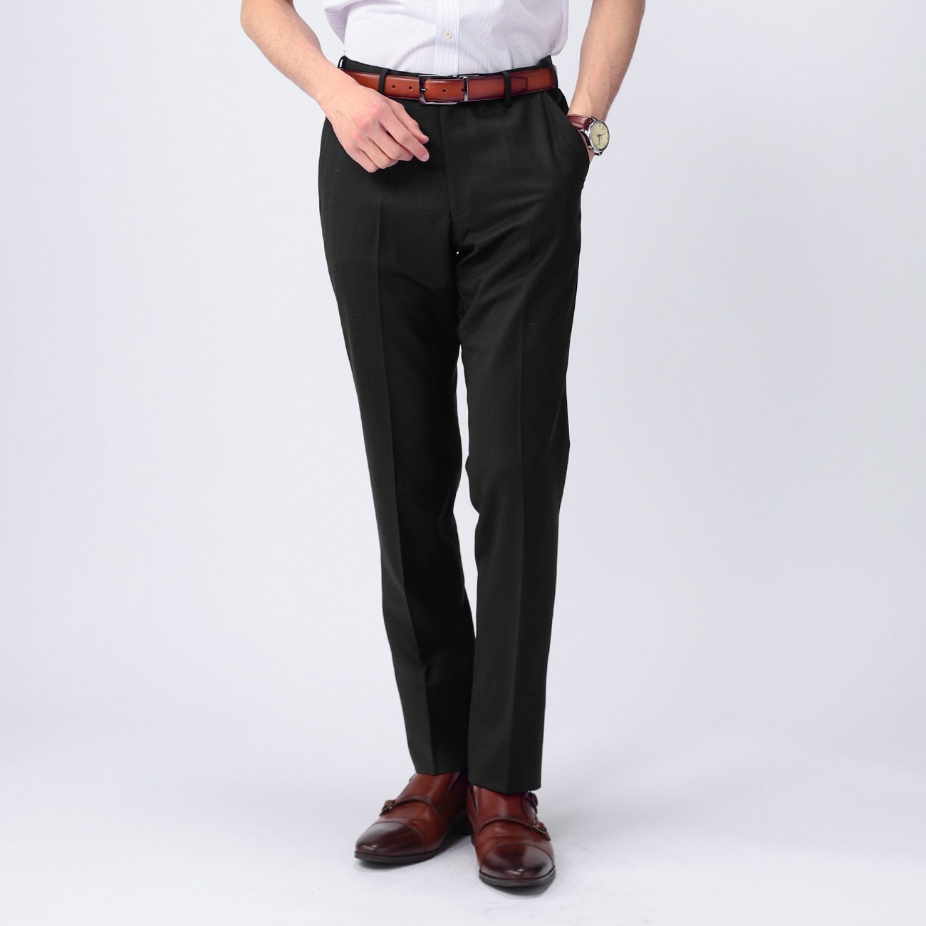 毎年人気な魔法のウエスト快適パンツ・セットアップ着用も可能ウエスト両脇がゴムになっており、左右約5cmずつ、計約10cm伸びるため、かがんだりする動作や着心地が楽です。座った時のおなか周りの窮屈感を低減し快適です。ウエスト部分(パイピング)に消臭繊維を使用しています。--------------------▼セットアップジャケット黒:品番G221K577 別売り--------------------▼仕様・テーパードノータック(細め)・股上浅めのローライズパンツのため、ウエストサイズは+2cmで仕上がっています。※ウエストサイズ73cmの場合、実際は75cmの仕上がりサイズとなっています。詳しくはサイズスペックをご確認ください。▼機能〇 洗える(洗濯機洗浄可)〇 ストレッチ〇 ノンアイロン〇 魔法のウエスト--------------------※こちらは裾のお直しが必要な商品です。ミシンでの補正をご希望の場合は「お直しの選択」ボタンよりお選びください。またお急ぎの場合はアイロンで裾上げができる、裾上げテープもご用意しております。
