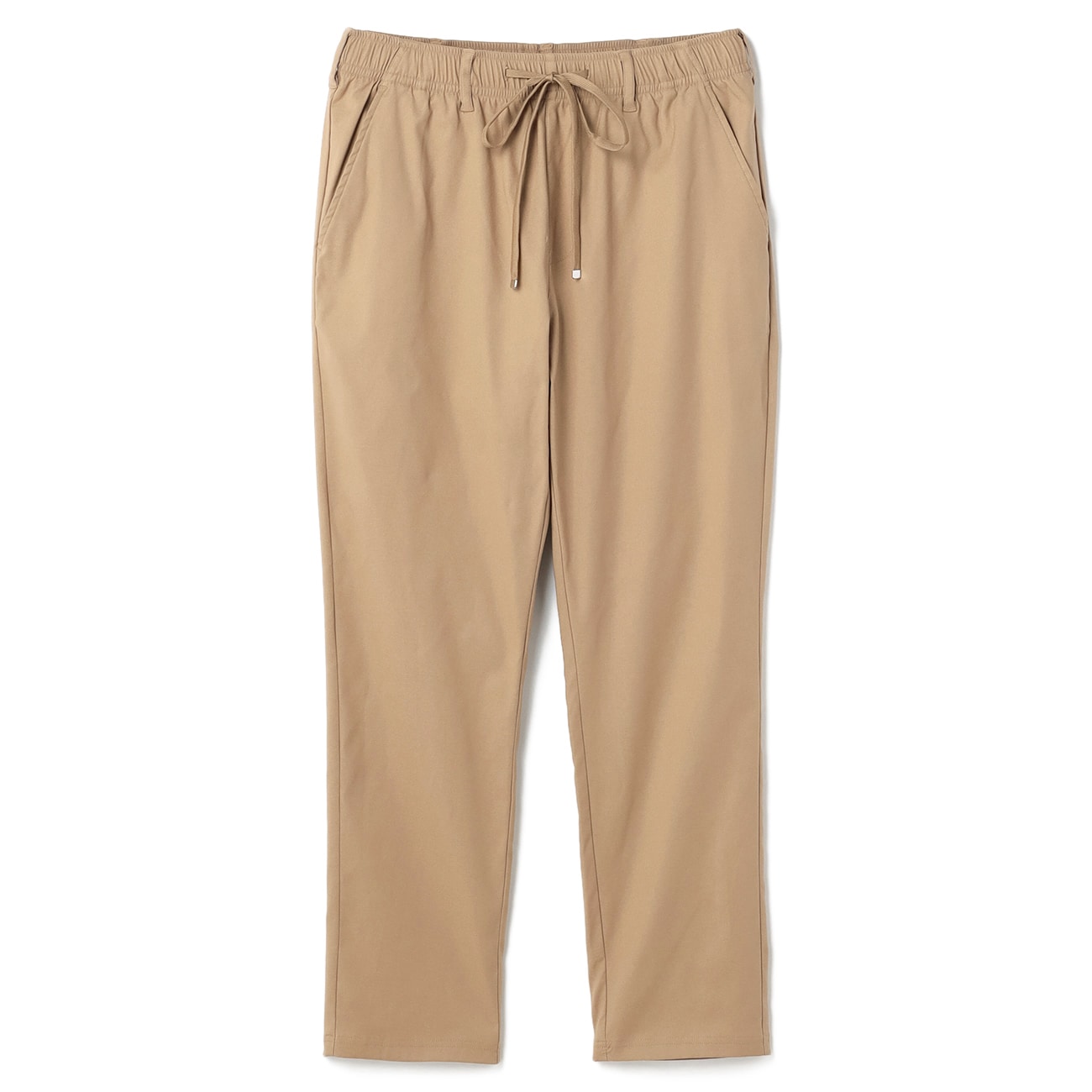 ストレッチ性が高く、動きやすいのびのびイージーパンツ微起毛した裏地は肌触りが柔らかく、秋口から春先まで重宝します。ウエストはシャーリング仕様になっており、着心地が楽で、紐での調整も可能です。ナチュラルなテーパードシルエットでどんなスタイルにも合わせやすいパンツです。リラックススタイルからキレイ目スタイルまで、幅広いコーディネートでお使いいただけます。