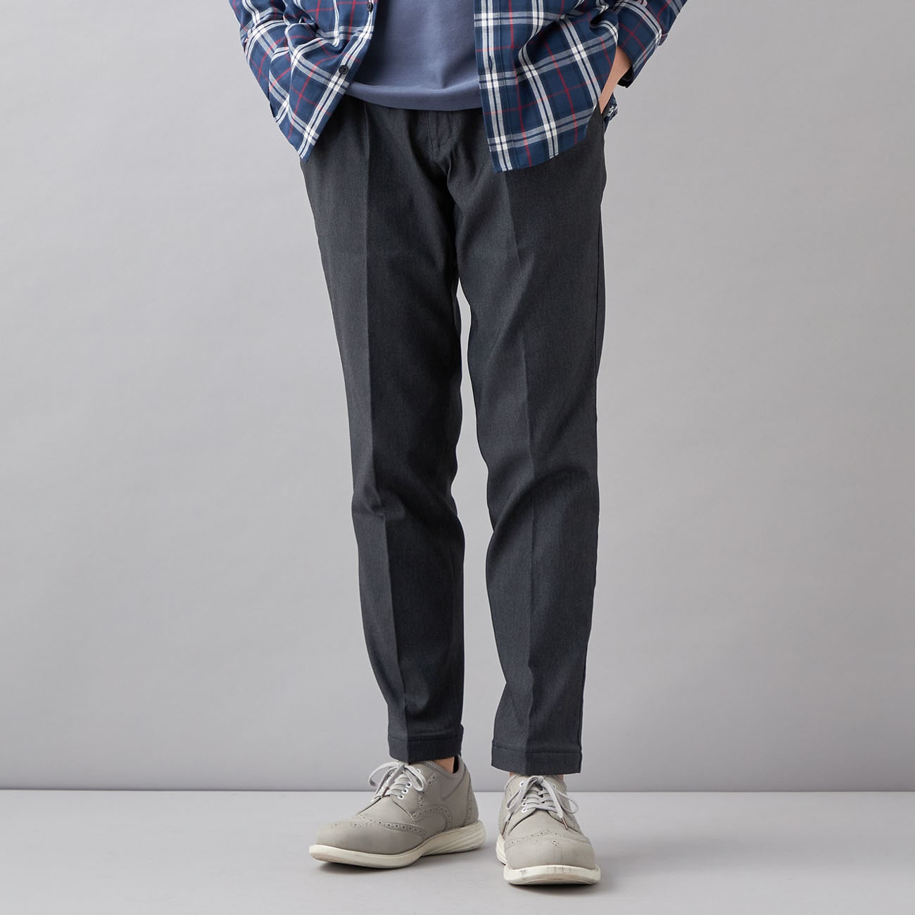 裾上げ不要ですぐ履ける!ストレッチ らくQパンツ テーパードノータック デニムライクツイル