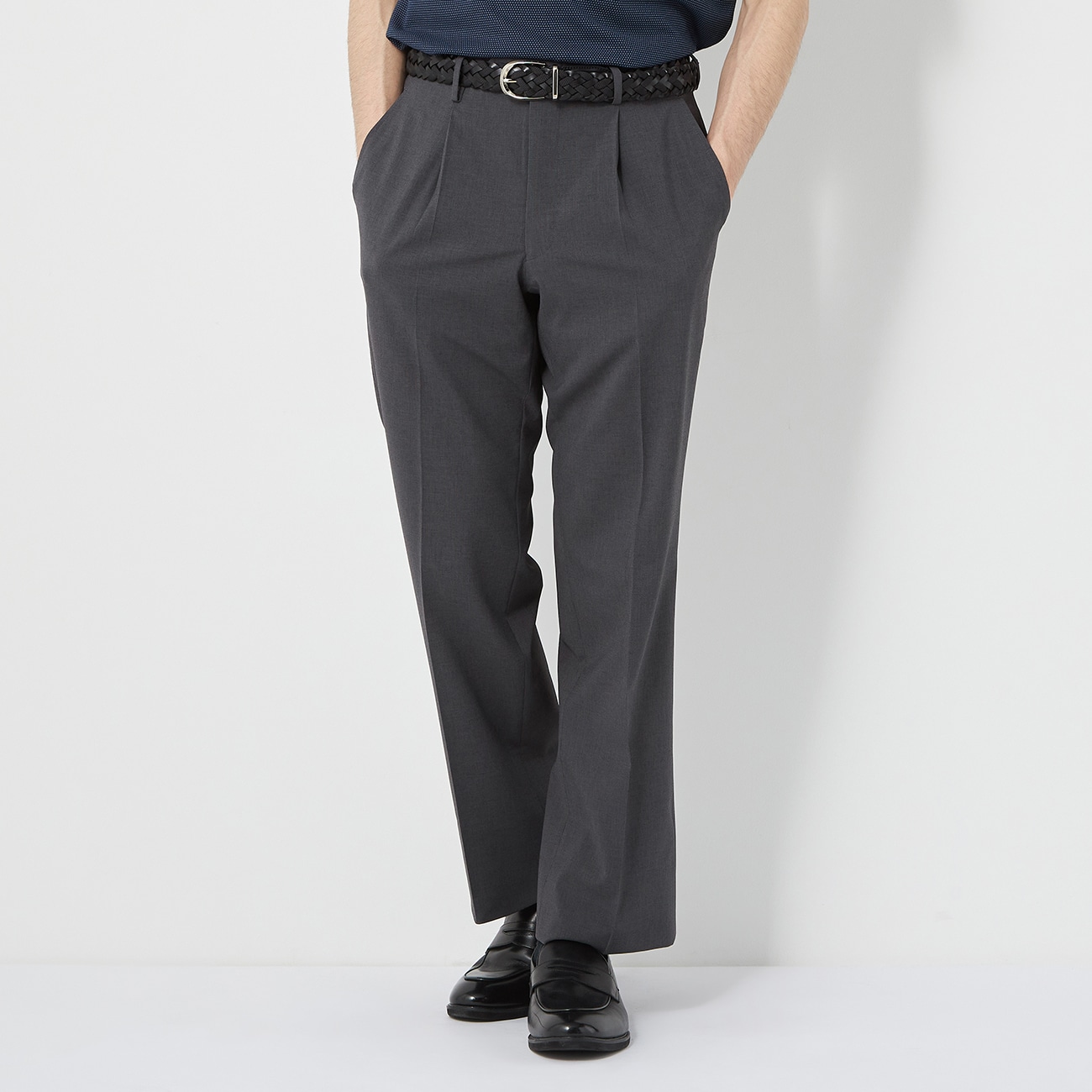 リラックス感漂う上質ウール調ワンタックパンツ◆企画者コメント◆ドレープ感のあるウール調の素材を使用し、上品な見た目なのでスーツ以外の仕事や通勤スタイルにもマッチするアイテムです。〇トレンドのリラックスシルエットワンタックでトレンド感あふれるリラックスシルエット。程よいゆとりがありながらも裾をすっきりさせることでキレイに着用できるのが魅力。前開きのファスナーでベルトループも付いているためさまざまなシーンで活躍します。同素材のシャツジャケットとセットアップでの着用もおすすめ。〇上品でソフトな風合いのウール調素材を使用ドレープ感と程よいハリ感、奥深い光沢感、ストレッチ性のあるウール調素材。きちんと感と上質感を両立、ビジネスシーンでも着用しやすいスマートさのある一本です。--------------------▼セットアップ 別売りシャツジャケット:品番8235604A▼仕様ワンタック、裾上げ済み、ウエストシャーリング※本商品は裾上げ済となります。股下の長さについては「サイズスペック」をご確認くださいませ。▼機能〇 洗える(洗濯機洗浄可)〇 ストレッチ--------------------▼スタッフ着用コメント@身長172cm 普段のサイズ:76/本商品着用サイズ:Mスタッフコーデはこちら・ワンタックでトレンド感のあるシルエット!!・ウエスト部分はドローコードで調整可能!!・ベルトループも付いていますのでベルトの着用も可能です!!A身長175cm 普段のサイズ:82/本商品着用サイズ:Lスタッフコーデはこちら・ウエストも伸びる抜群のストレッチ性・ご自宅でお洗濯可能・少し丈は長めなので気になる方は補正がオススメ・ドローコードとベルトループ付きなのでビジカジ着回せるB身長180cm 普段のサイズ:79/本商品着用サイズ:Mスタッフコーデはこちら・丈の長さはMサイズで股下67pで身長ある方はくるぶし上ぐらいになります。・長く感じた方はロールアップして、短く感じた方は腰位置を少しずらすか、スニーカーやローファーを履くのをオススメします◎--------------------