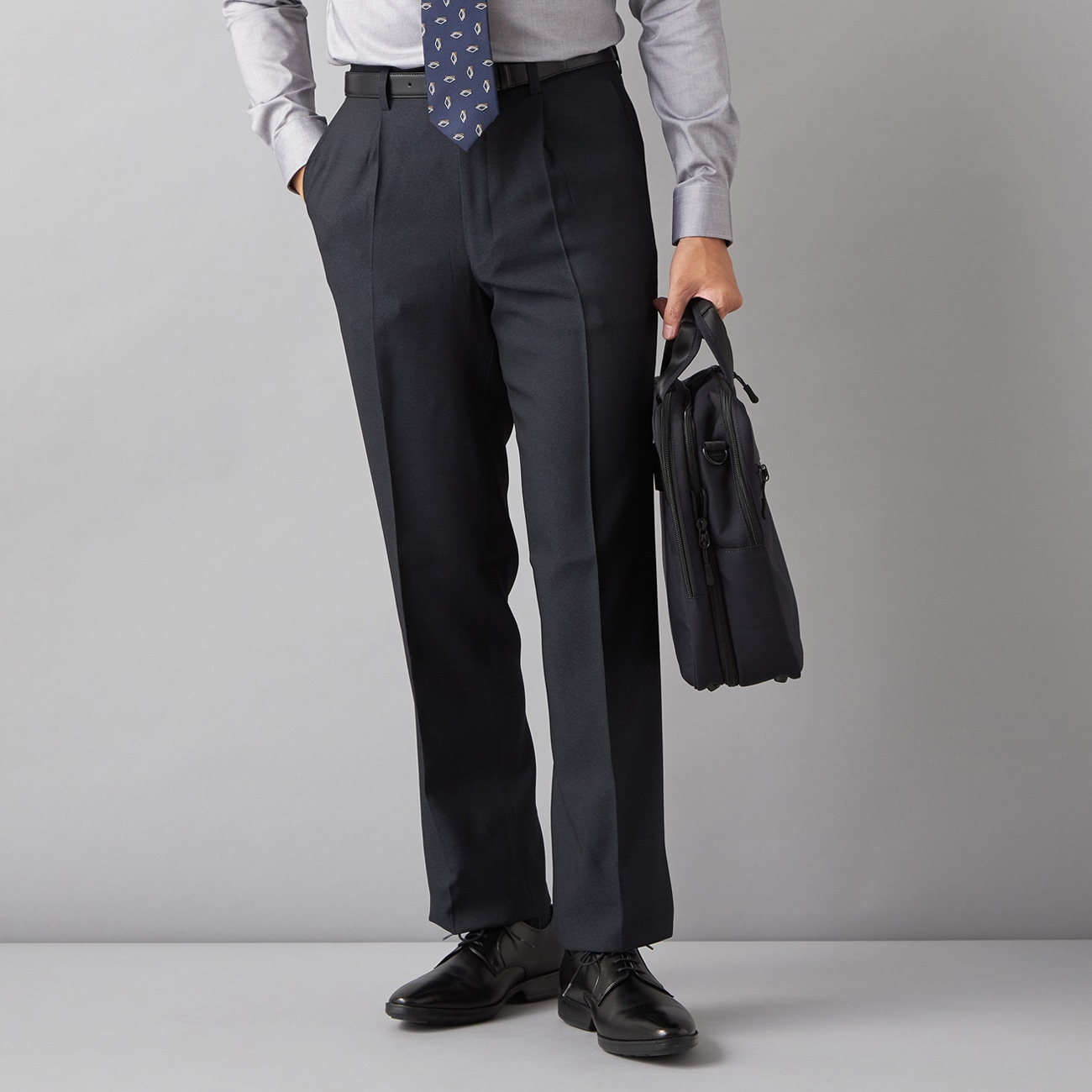 ストレッチ・ウエストらくらく機能付きの快適ノンアイロンパンツ毎シーズン大変ご好評を頂いておりますウール混素材を使用したストレスフリーなノンアイロンパンツです。洗って干してすぐ着られる「ノンアイロン」でお手入れ簡単。ウエスト両脇が一部ゴム仕様になっており、左右約2.5cmずつ、計約5cm伸びる仕様で快適な着心地。--------------------▼仕様ワンタックサイズ感:ベーシック(当社比でゆったりめのサイズ)▼機能〇 洗える(洗濯機洗浄可)〇 ノンアイロン〇 ストレッチ〇 ウエストらくらく(両脇ゴム仕様)〇 ウエスト部分(パイピング)消臭繊維使用【補正について】※こちらは裾のお直しが必要な商品です。ミシンでの補正をご希望の場合は「お直しの選択」ボタンよりお選びください。またお急ぎの場合はアイロンで裾上げができる、裾上げテープもご用意しております。