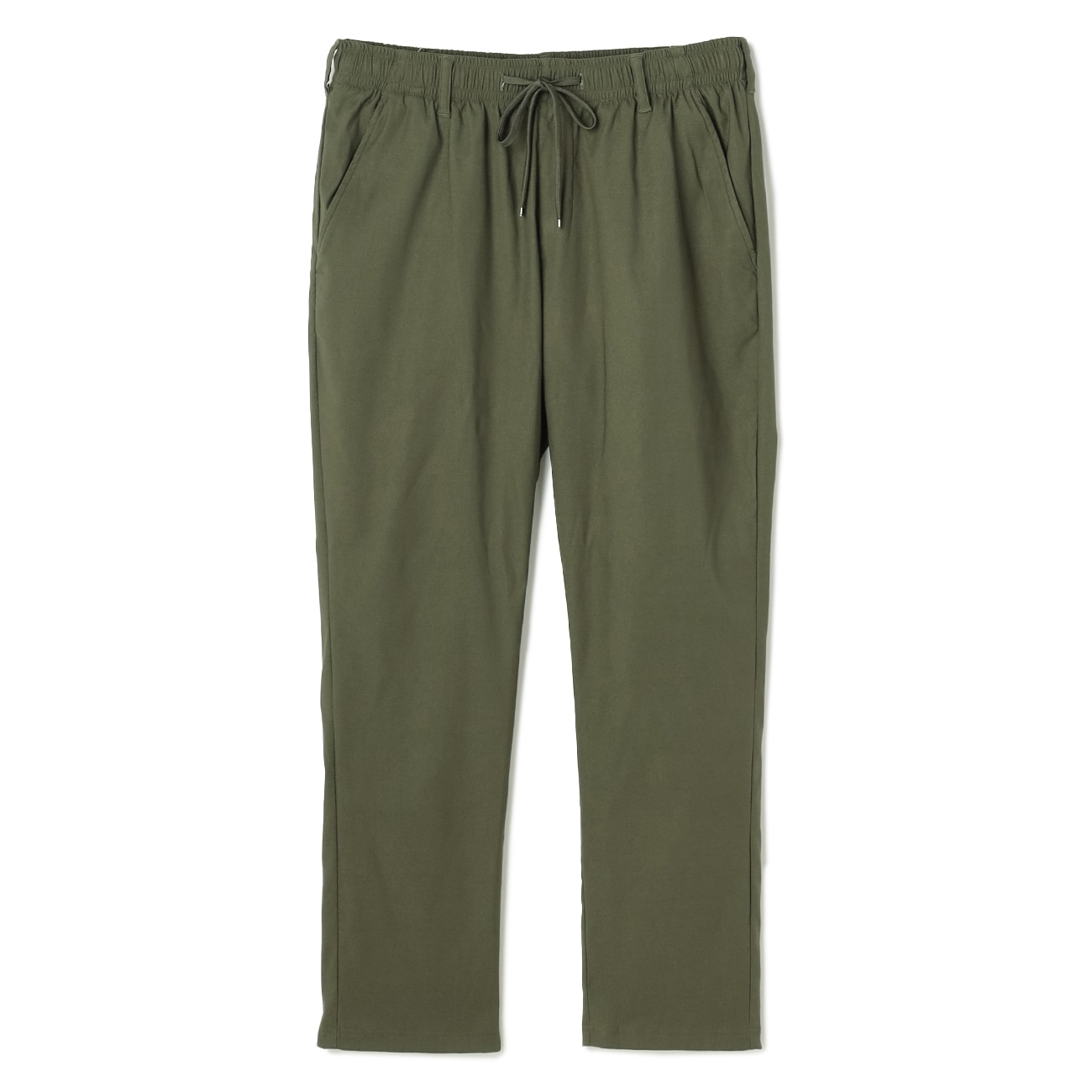 ストレッチ性が高く、動きやすいのびのびイージーパンツ微起毛した裏地は肌触りが柔らかく、秋口から春先まで重宝します。ウエストはシャーリング仕様になっており、着心地が楽で、紐での調整も可能です。ナチュラルなテーパードシルエットでどんなスタイルにも合わせやすいパンツです。リラックススタイルからキレイ目スタイルまで、幅広いコーディネートでお使いいただけます。