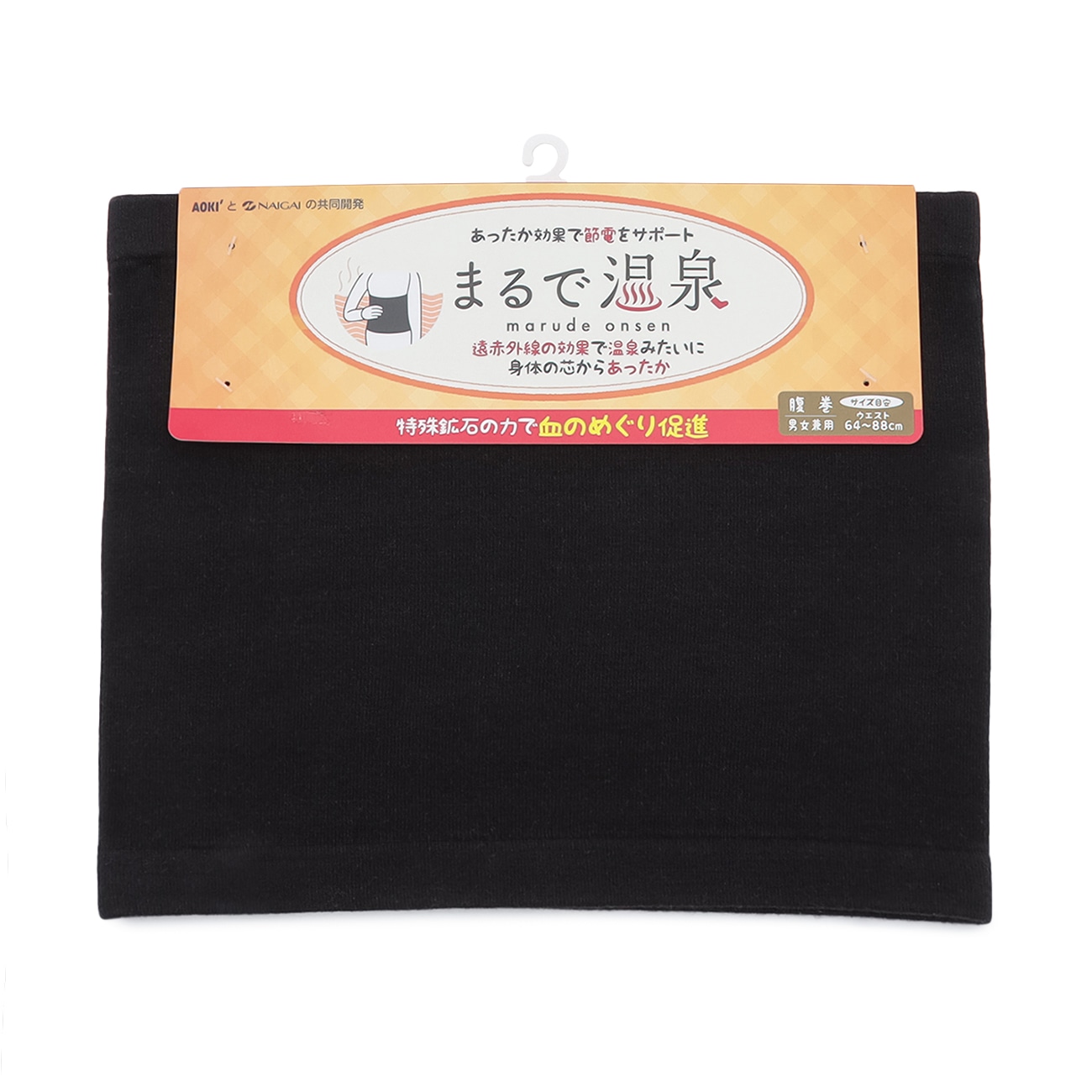 冬の寒さと節電対策に!遠赤外線の力を活かした「まるで温泉」腹巻◆企画者コメント◆AOKIとNAIGAIで共同開発した、あったか効果で節電をサポート「まるで温泉」シリーズ新登場です!遠赤効果でまるで温泉や足湯につかっているような温かさが持続しする腹巻です。〇遠赤外線が血行を促進プリントされた「テラヘルツ鉱石」が放つ遠赤外線は血行の促進が期待できます。※本品自体に発熱する機能はありません。〇温かさの秘密「おなか」を血の巡りを促進する特殊な鉱石プリント(背中側に使用)のチカラでまるで温泉につかっているような温かさが持続します。〇冬のあったか節電アイテム・男女兼用で使える快適に過ごしながらも光熱費をカットできる。電気を使わないから場所を選ばず寒さ対策ができるのも魅力。寒さを感じたらさっと着るだけ!男女兼用で使えるベーシックなカラー展開も嬉しいポイント。あったか冬のイチオシアイテムです。--------------------▼機能〇 洗える(洗濯機洗浄可)〇 保温