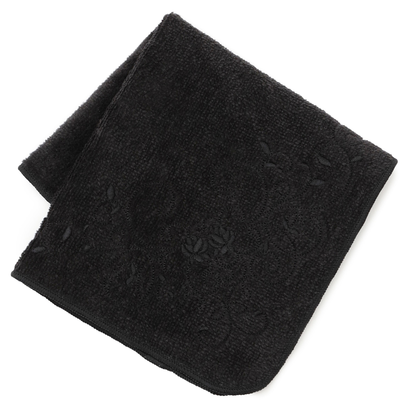 礼装用のタオルハンカチ使い心地の良い、綿100%上質素材 今治タオル。エレガントな刺繍を施したタオルハンカチです。黒無地に施された控えめな刺繍で、礼装にもお使いいただけます。1つ揃えておくと安心なアイテムです。