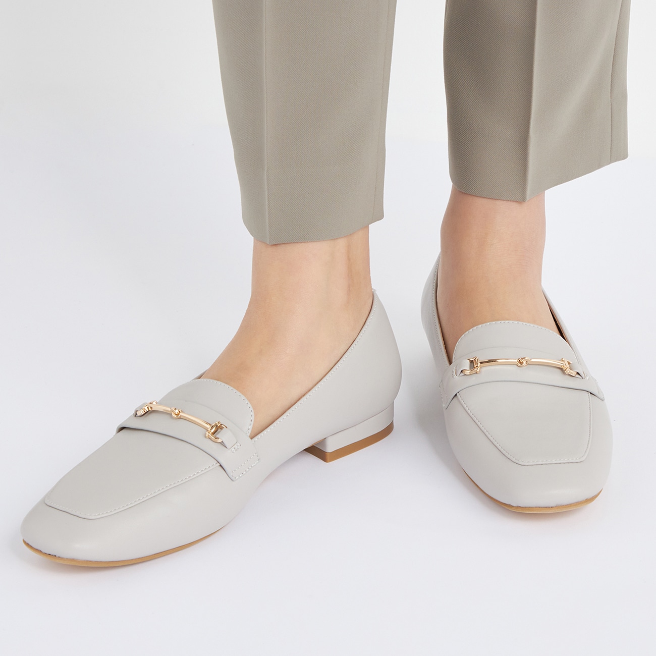 足の形を記憶する、「ワタシ」のためのパンプスシリーズ〇ヒトの体温で軟化し、フィット体温に反応し軟化する素材「HUMOFIT」(三井化学株式会社)をインソールに使用。足を包み込むように形状変化し、足にかかる圧力を分散。2〜3日連続着用することで、インソールがお客様お一人おひとりの足型に馴染むよう変化し、気軽にオーダーメイド感覚のシューズを体感することができます。〇フレッシュでスタイリッシュな装いにローファースタイルはカジュアルな印象を与えますが、華奢なビット金具がエレガントさを演出し、いつものスタイルに気品をプラス。かっちりハンサムコーデはもちろん、ブラウス・スカート・ワンピースに合わせて甘辛コーデにもバランスのとりやすいアイテムです。▼仕様サドル(甲分を左右に渡るパーツ)あり--------------------▼スタッフ着用コメント@身長156cm 普段のサイズ:23.5cm 〜24.0cm/本商品着用サイズ:23.5cmスタッフコーデはこちら「ビットローファー:23.5cm・普段の靴選びはヒール有り→23.5cm or 24.0cmヒール無し→23.5cmが多いです。足幅は3Eか4Eを基準に選ぶくらいの足幅広めタイプ・こちらのビットローファーは23.5cmでちょうどぴったり◎横幅も痛くなくかかと部分の余りも手の小指の半分くらい・履いた瞬間は固めかなと思いましたが、3分ぐらい履いていたら中のクッション部分が足にフィットしてくるのが良く分かる!!包み込んでくれる感じで歩きやすかったです」A身長160cm 普段のサイズ:23.5cm/本商品着用サイズ:23.5cm スタッフコーデはこちら「・いつも通りのサイズ選びで◎。・ビットローファーはトレンド感があります!・履いてるとすごく馴染みが良いです。」B身長169 cm 普段のサイズ:24.5cm/本商品着用サイズ:24.5cmスタッフコーデはこちら「・24.5センチ着用。・いつものサイズでOK。・とても履きやすいです。私は毎日愛用してます。」--------------------
