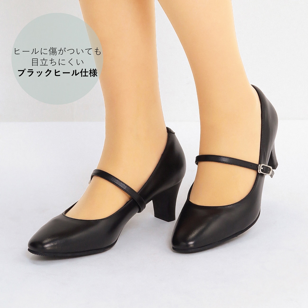 AOKI × マイナビスチューデント共同開発「究極の就活パンプス」〇ヒールに傷がついても目立ちにくい「ブラックヒール仕様」ヒールの芯材を白から黒に変更したことで、従来キズがついたら目立ってしまっていたヒール部分を改善。キズがついても黒いため目立ちにくく、就活などでの大切なシーンをサポートします。〇ストラップは取り外し可能ストラップを外せばシンプルなプレーンパンプスに変身。シーンによって使い分けができ便利です。〇キレイさと歩きやすさを両立する5.5cmヒール高すぎず低すぎないちょうどいい高さの5.5cmヒール。また、幅広4Eタイプでゆったりとした履き心地。幅広ながらも、甲が薄く見える形状でスッキリ見えします。〇中敷きがクッション素材足にしっかりフィットするクッション入りの中敷のおかげで、ソフトな履き心地に。かかと裏にはパッドが入っていて、靴擦れ・かかとの抜けを軽減してくれます。--------------------▼機能〇 撥水加工〇 高通気性〇 つま先部分に消臭テープ搭載〇 4E〇 中敷きクッション素材〇 かかと裏パッド付き〇 歩きやすさを追求した、屈曲性の高いソール【革製品のお取り扱い上のお願い】・天然素材のため、キズやシワが入っている場合がございます。・水濡れや、摩擦により色移りや変色をする場合がございます。 ・長時間直射日光にあたると、熱により変色や変形をおこす場合がございます。・使用後は、汚れや汗などを拭き取り、直射日光の当たらない湿気の少ないところに保管してください。
