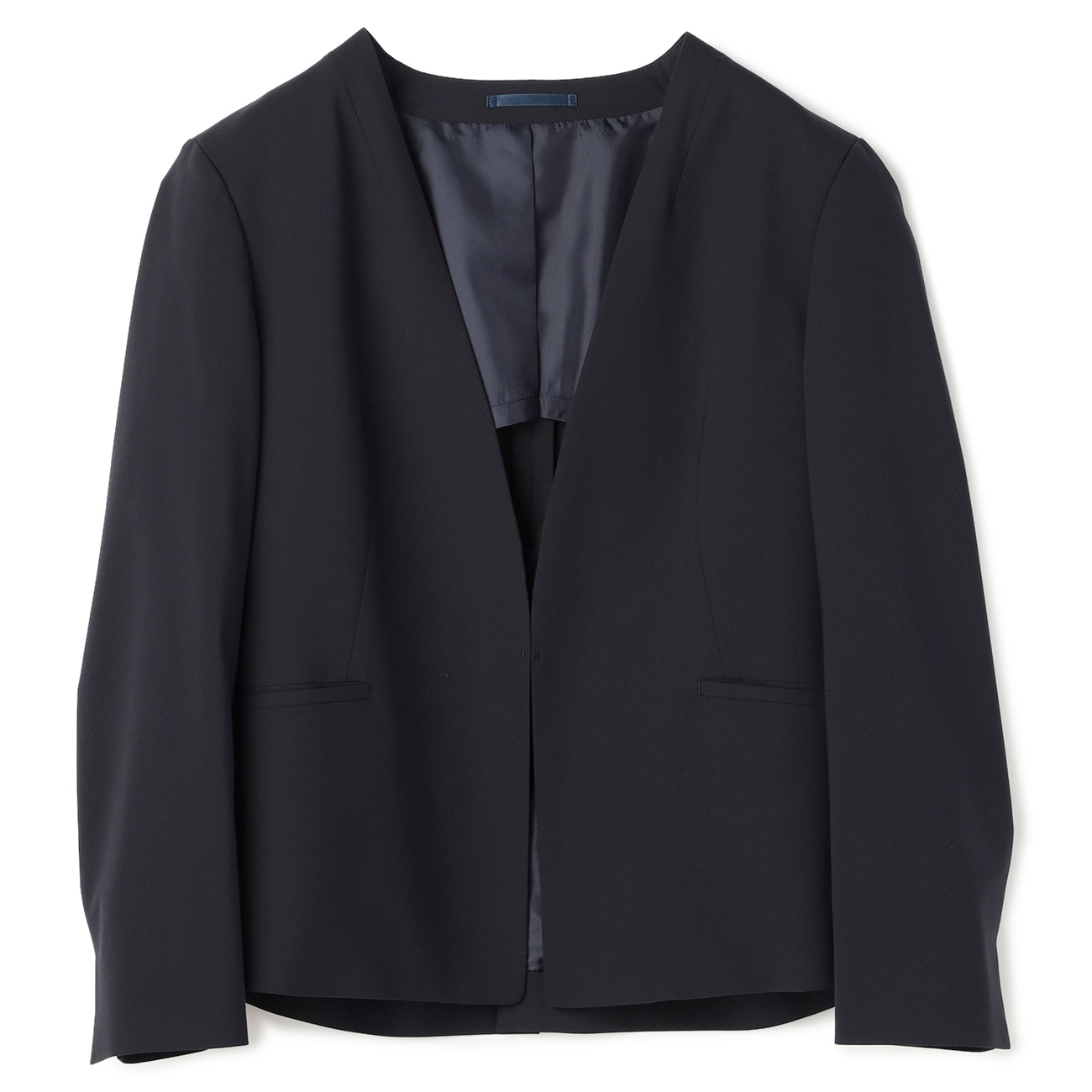 洗えてお手入れ簡単、ストレッチ素材のノーカラージャケット裏地が背抜きになったジャケットです。ノーカラーデザインで、テーラードジャケットほどかっちりしすぎず程よいきちんとさが出ます。すっきり見えるカッティングでキレイ見えに。袖はリターンカフス仕様のため、一折りしてこなれ感を演出するのもおすすめです。--------------------▼機能〇 洗える(洗濯機洗浄可)〇 ストレッチ〇 型崩れに強い▼セットアップパンツ:品番9221782※本商品にはハンガーが付属します。保管用カバーは付属いたしませんのでご了承ください。お求めの方はこちら。