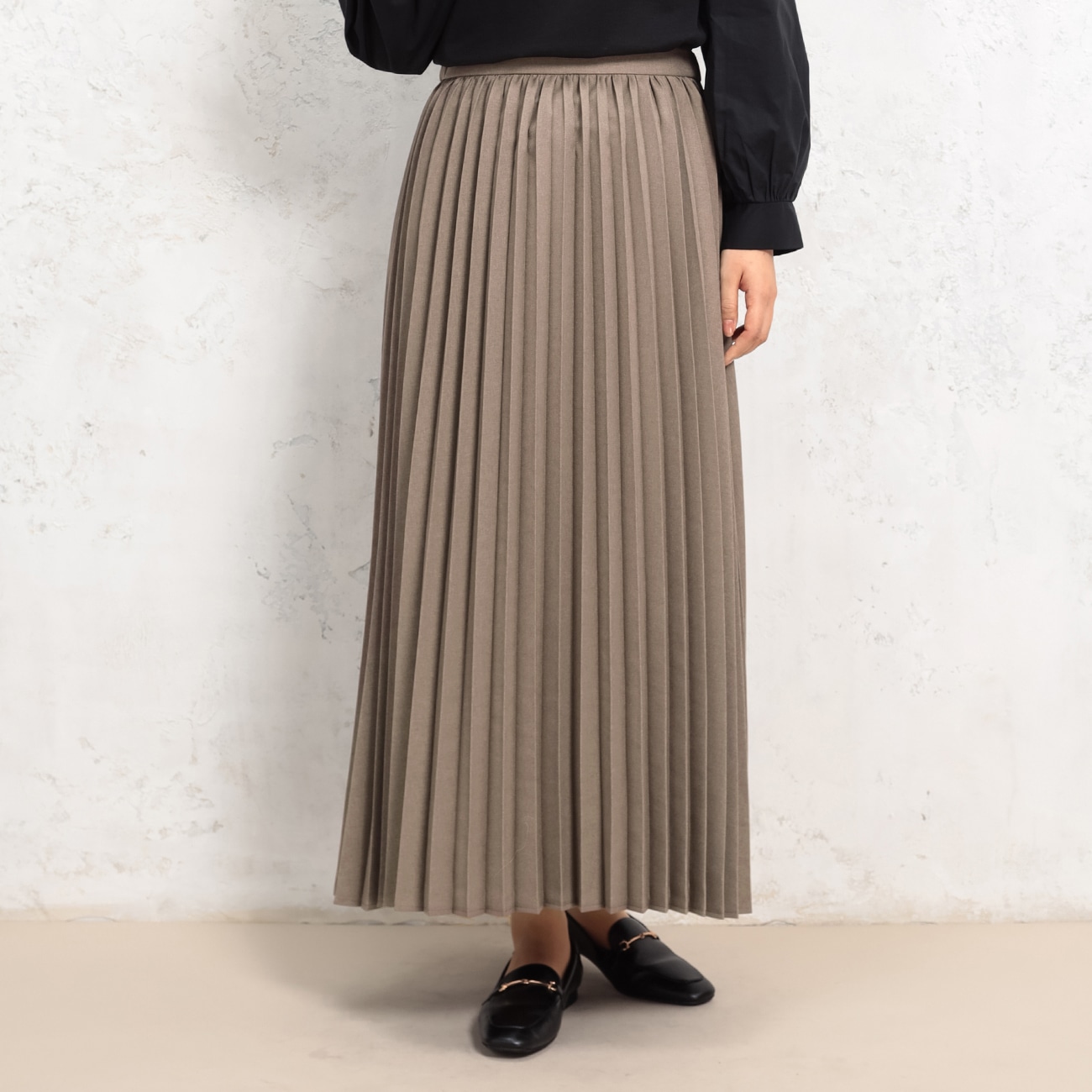 立体的で華やかなアコーディオンプリーツが上品さを格上げ〇キレイ見えが叶う美シルエット AOKIの360°キレイスカートはキレイ見えのフロントデザイン、ジャストウエスト設定で脚長効果に。バックスタイルはウエストゴム仕様でストレスフリーなのも◎ウールライクツイル素材でしなやかな高級感、立体的で華やかなアコーディオンプリーツが歩くたびに揺れ、しなやかさを演出し、コーディネートを格上げします。〇お手入れも簡単、いつでもキレイをキープ自宅の洗濯機で洗えていつでも清潔をキープ。防しわ性のある素材で長時間着用でもしわになりにくく、洗って干してそのまま着られてラク。--------------------▼コーディネートジャケットやベスト合わせでオフィススタイル、ブラウス・ニット合わせで休日スタイルと何にでも決まりやすく、上品に、カジュアルにと、通勤から休日までオン・オフ問わず幅広いシーンで活躍してくれます。▼仕様 ※当社比透け感:なし裏地:あり伸縮性:あり光沢感:なし生地の厚さ:しっかりした生地感▼機能〇 洗える(洗濯機洗浄可)〇 2wayストレッチ素材で着心地がいい〇 防しわ(着用時や洗濯後にしわになりにくい)〇 UVカット性のある素材で紫外線対策も安心--------------------▼スタッフ着用コメント@身長154cm 普段のサイズ:S/本商品着用サイズ:Sスタッフコーデはこちら「いつものサイズで丁度良かったです。・透け感なし・スカート丈はくるぶしの少し上くらい。・ウエスト後ろのみゴム仕様」A身長156cm 普段のサイズ:M〜L/本商品着用サイズ:Mスタッフコーデはこちら「・ややゆったり目です。ウエスト後ろゴム有りでウエストを伸ばすとこぶし1個半ゆとりが出来ます。サイズアップはしないでOKと感じます。・丈感は身長156pで足のくるぶしぐらい。」B身長164cm 普段のサイズ:M〜L/本商品着用サイズ:Mスタッフコーデはこちら「スカート丈が足首がでるくらいだったので、脚が細く見えるちょうど良い丈感でした。生地感はしっかりしているのでプリーツ部分はふわっと広がる感じではなく、そのまま下に落ちる感じです。」--------------------
