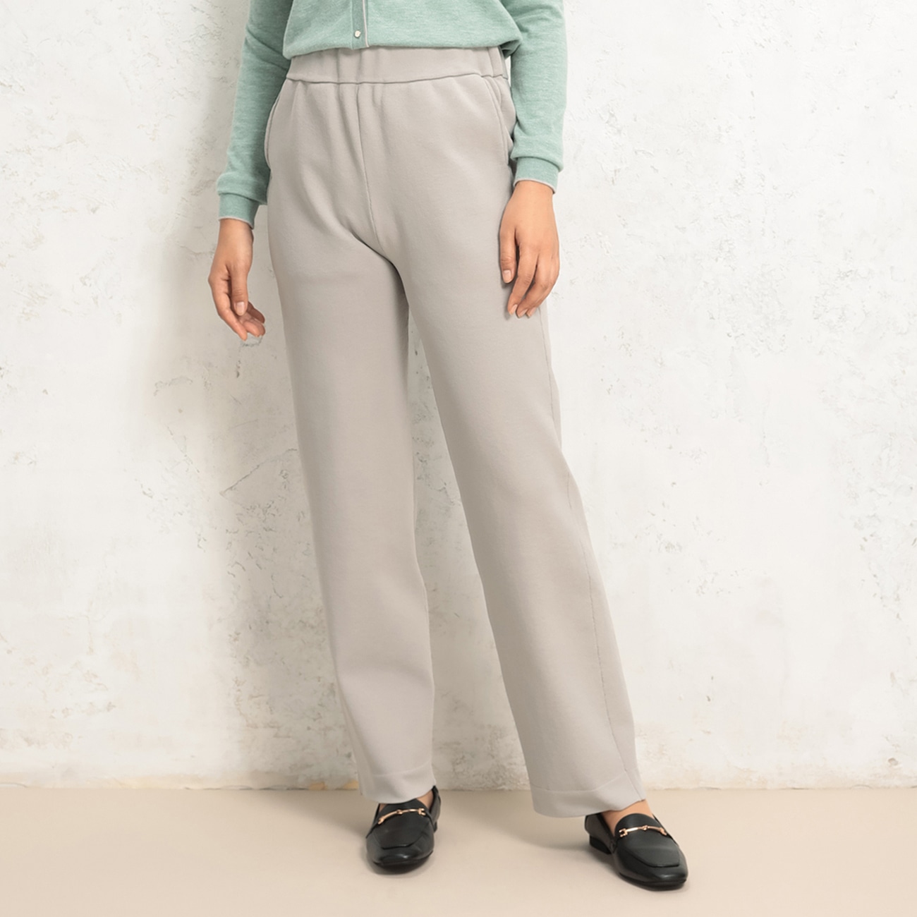 【パジャマスーツ】総針ニット ワイドストレートパンツ セットアップ着用可
