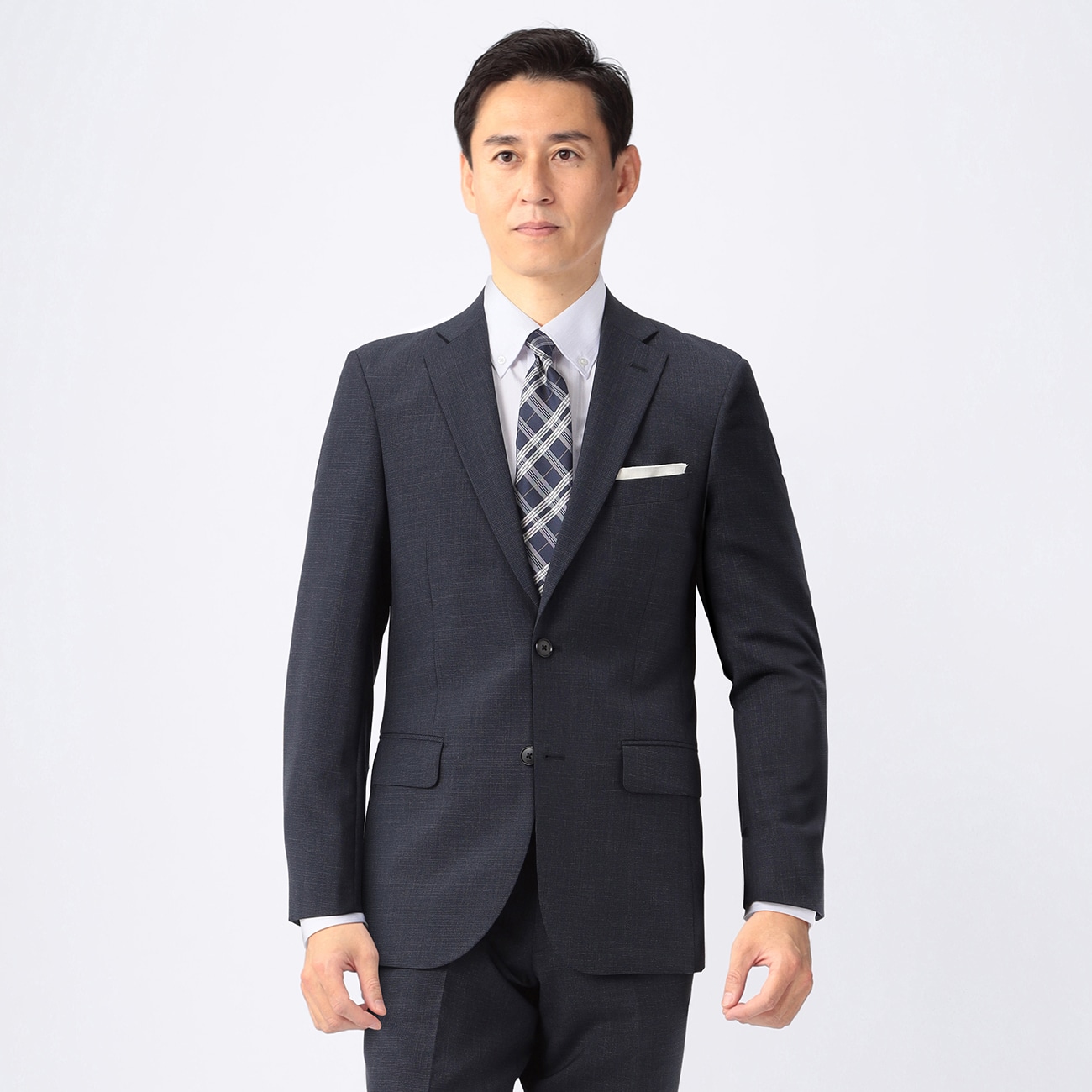 防しわ性がありきちんと見えて安心▼仕様ジャケット:センターベント・背抜き裏地パンツ:ノータック※ローライズパンツのため、お腹周りの圧迫が軽減されます。※お届け商品の付属タグに「ウエストの実寸は表示サイズより+2cmで仕上がっています」と記載がございますが、WEBページ上ではウエストサイズは元々+2cmで記載しておりますのでご安心くださいませ。▼生地の厚さ普通▼機能〇 防しわ(着用時や洗濯後にしわになりにくい)〇 日本人の骨格に合った前肩縫製で快適な着心地--------------------※こちらは裾のお直しが必要な商品です。ミシンでの補正をご希望の場合は「お直しの選択」ボタンよりお選びください。またお急ぎの場合はアイロンで裾上げができる、裾上げテープもご用意しております。※本商品にはハンガーが付属します。保管用カバーは付属いたしませんのでご了承ください。お求めの方はこちら。