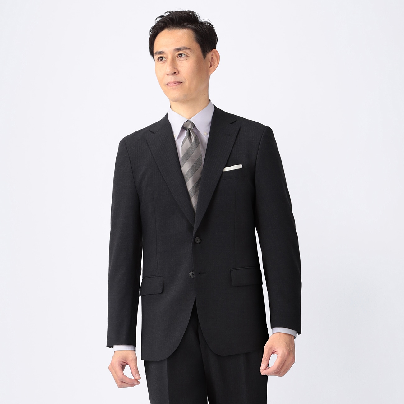 エアクール 洗える 高通気 2パンツスーツ チャコールグレーシャドーストライプ LES MUES ベーシック